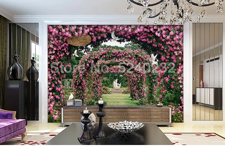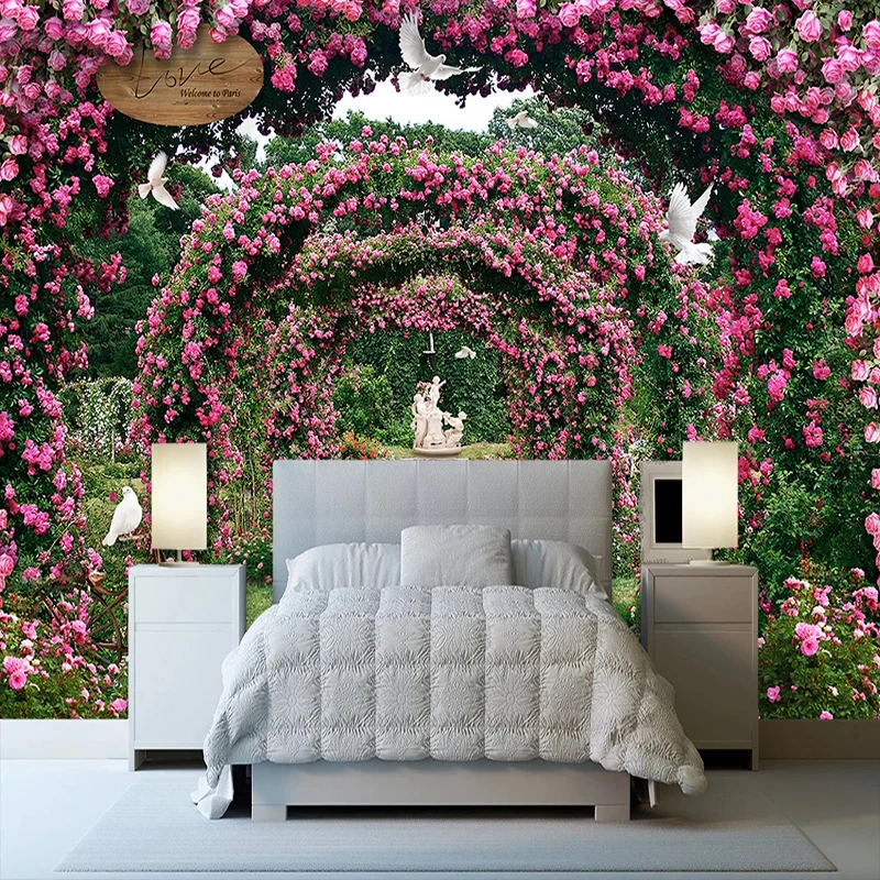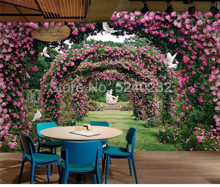 Романтический цветок Виноградная лоза розы голубь садовый пейзаж большая Настенная картина роспись кафе ресторан спальня домашний декор обои