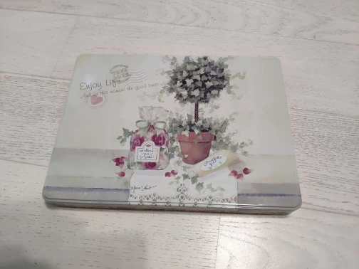 Коробка доставлена в одной посылке еще с двумя жестяными коробками другого размера с аналогичным принтом. Все три заказывались в одном магазине. Эта также красивая, но жесть немного тоньше по сравнению с другими двумя. Все было упаковано в одну картонный ящик, но именно под этой не было дополнительного упаковочного материала для защиты. Из трех в посылке - именно эта коробка пришла с небольшой замятиной снизу. Поэтому снимаю одну звезду. Буду использовать для хранения бумаги формата А4, как и планировалось. Замятины снизу невидно, но... сами понимаете, неприятно получать товар с дефектом. Просьба продавцу - обеспечивать качественный и красивый товар надежной упаковкой. Тем более когда заказывается несколько вещей не стоит экономить на слоях пупырки или куске пенопласта.