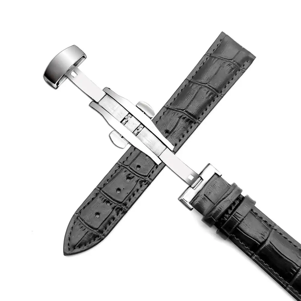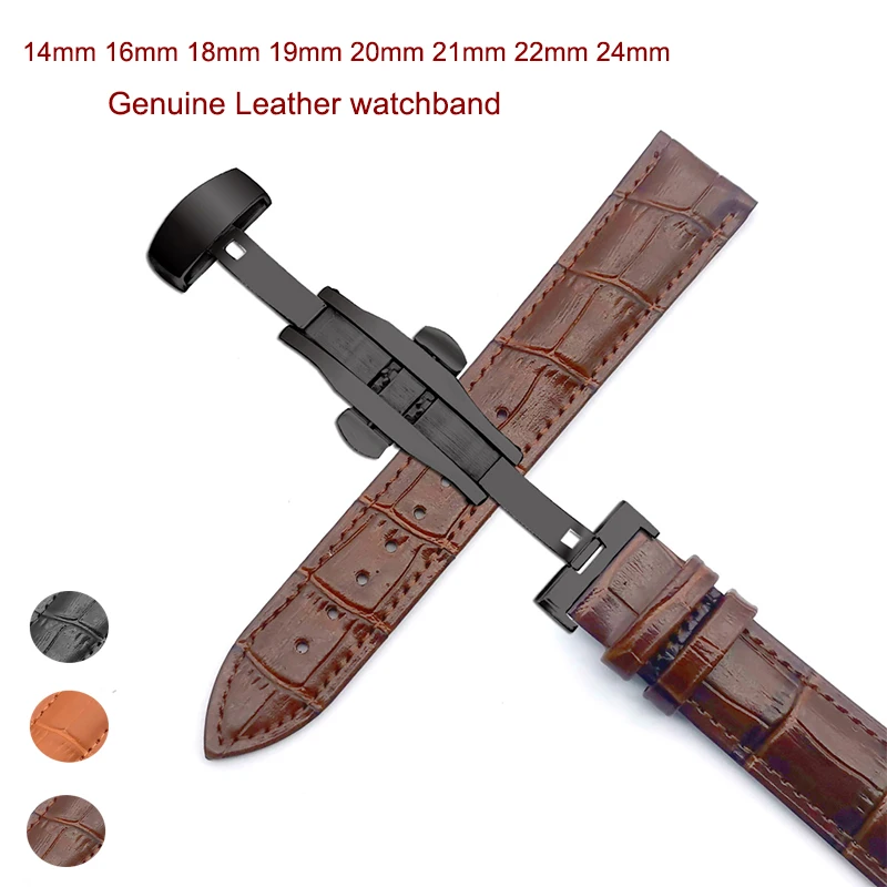 Ремешок для часов из натуральной кожи универсальный, браслет со стальной пряжкой-бабочкой, с инструментами, 14-24 мм