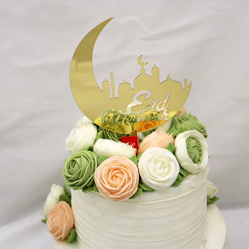 Акриловый Топпер для торта Eid Mubarak Золотое зеркало Рамадан кекс Топпер флаг для хаджа Mubarak украшения для торта мусульманский ИД Baby Shower