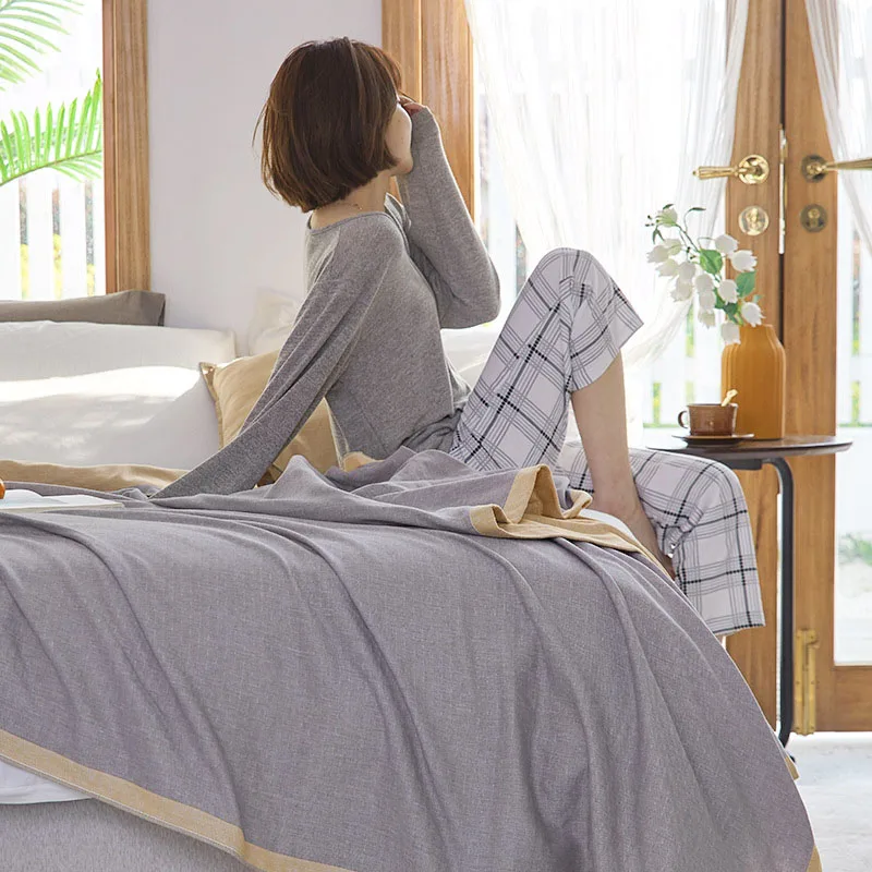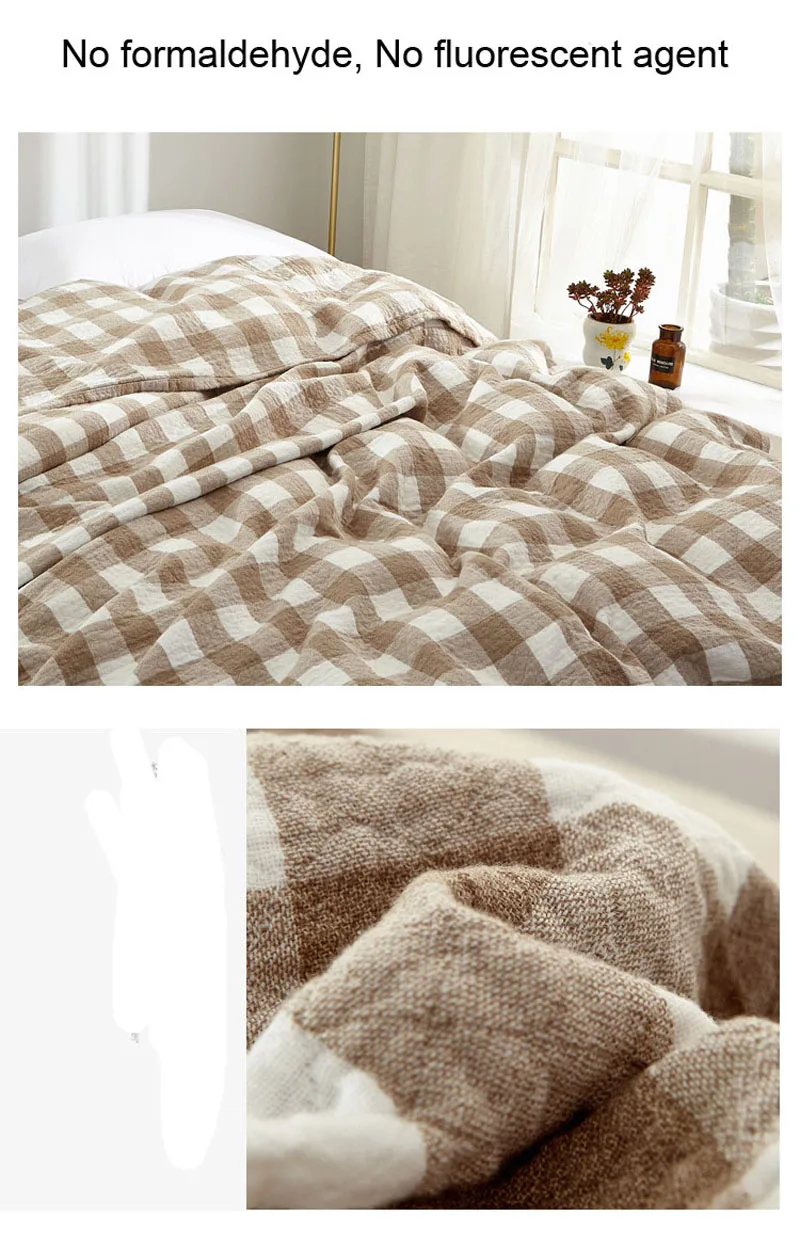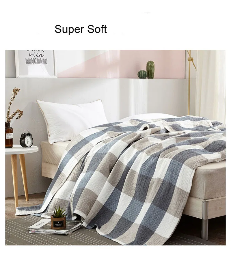 Марлевое Хлопковое одеяло, летнее Клетчатое одеяло для кровати, тонкое одеяло, покрывало для двуспального кровати
