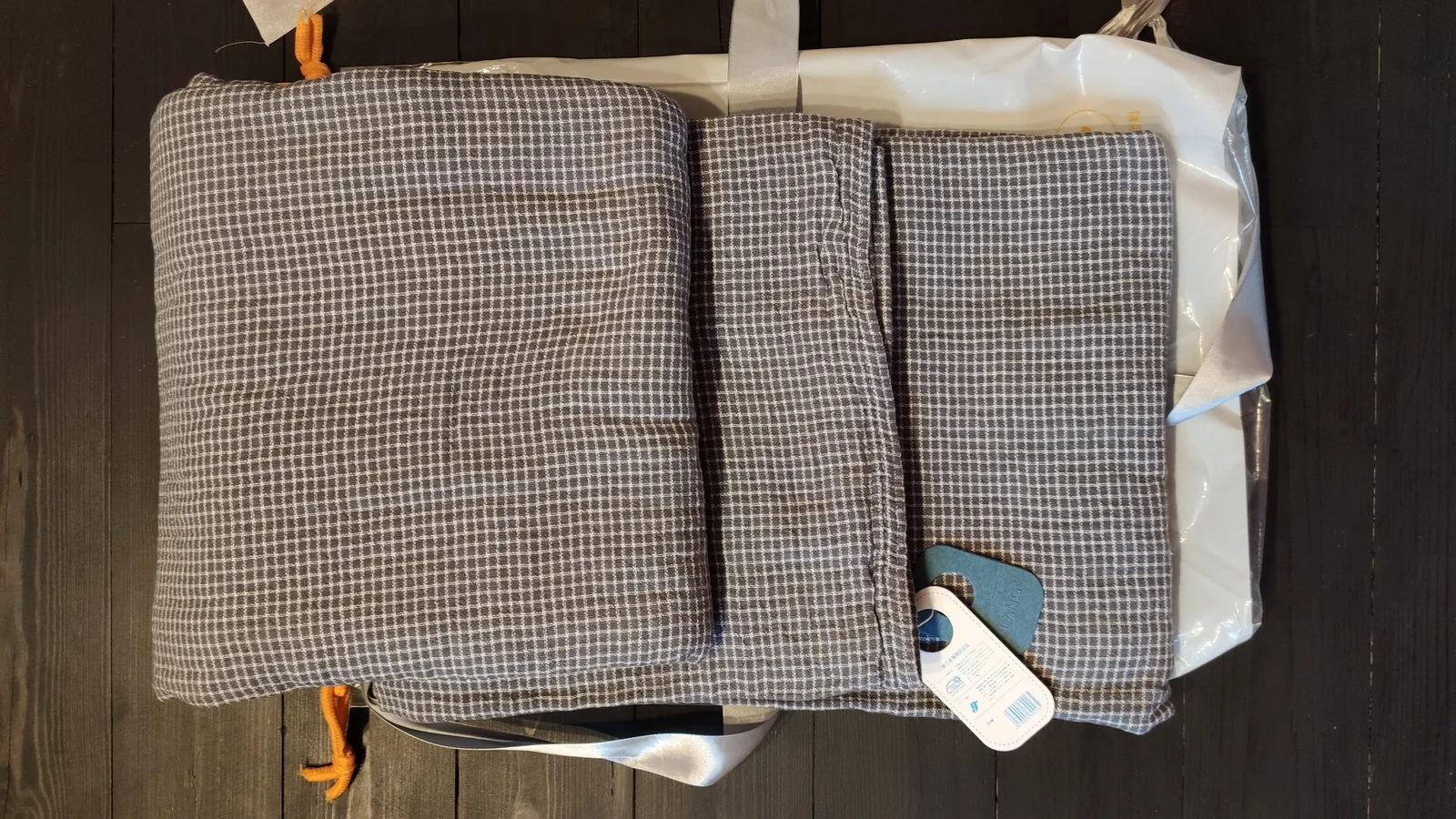 Материал натуральный - хлопок, на ощупь ткань мягкая, размер соответствует заявленному. Серый цвет немного тусклее не такой яркий как на картинке и по плотности ткань немного жидковата. Доставка через Chinao оказалась долгая, больше месяца и не привезли в указанный постомат, пришлось ехать самому забирать в пункт выдачи
