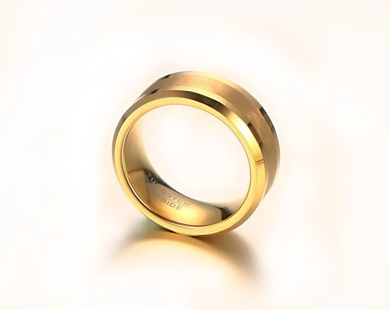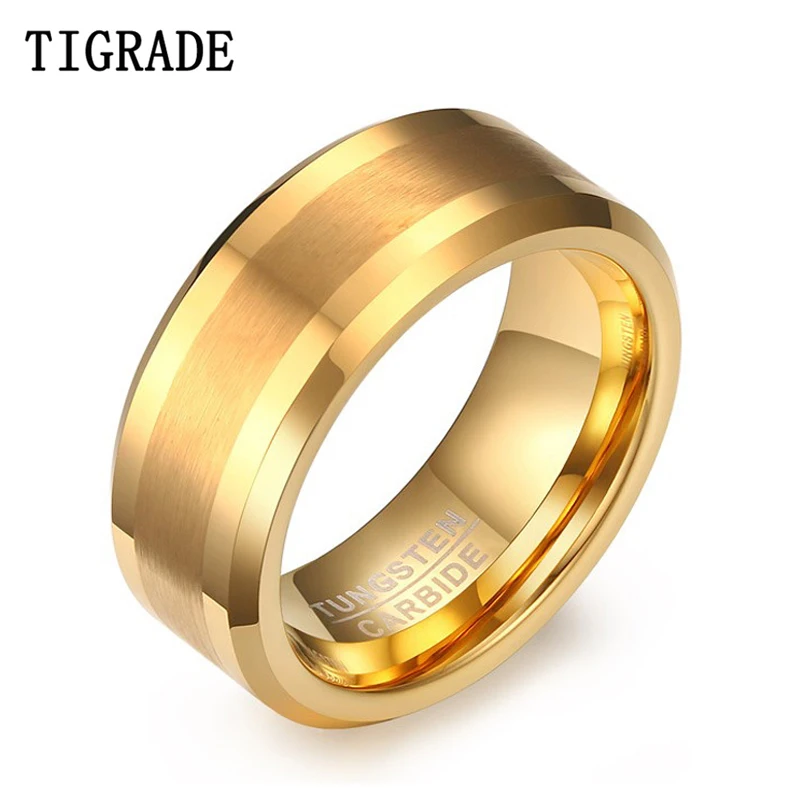Кольцо Tigrade для мужчин и женщин, роскошные кольца из карбида вольфрама золотого цвета с скошенными краями, матовая отделка, удобное прилегание