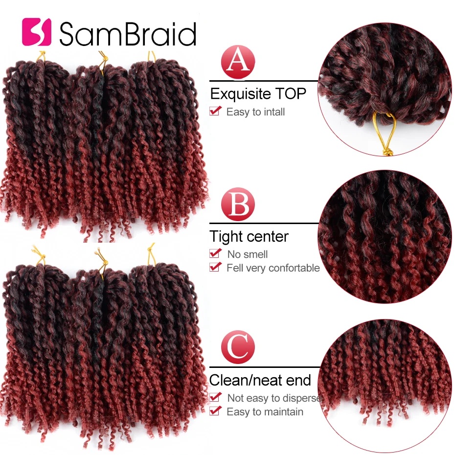 SAMBRAID афро кудрявые вьющиеся объемные синтетические волосы 8 дюймов 3 шт.компл. волосы для наращивания крючком Marlybob