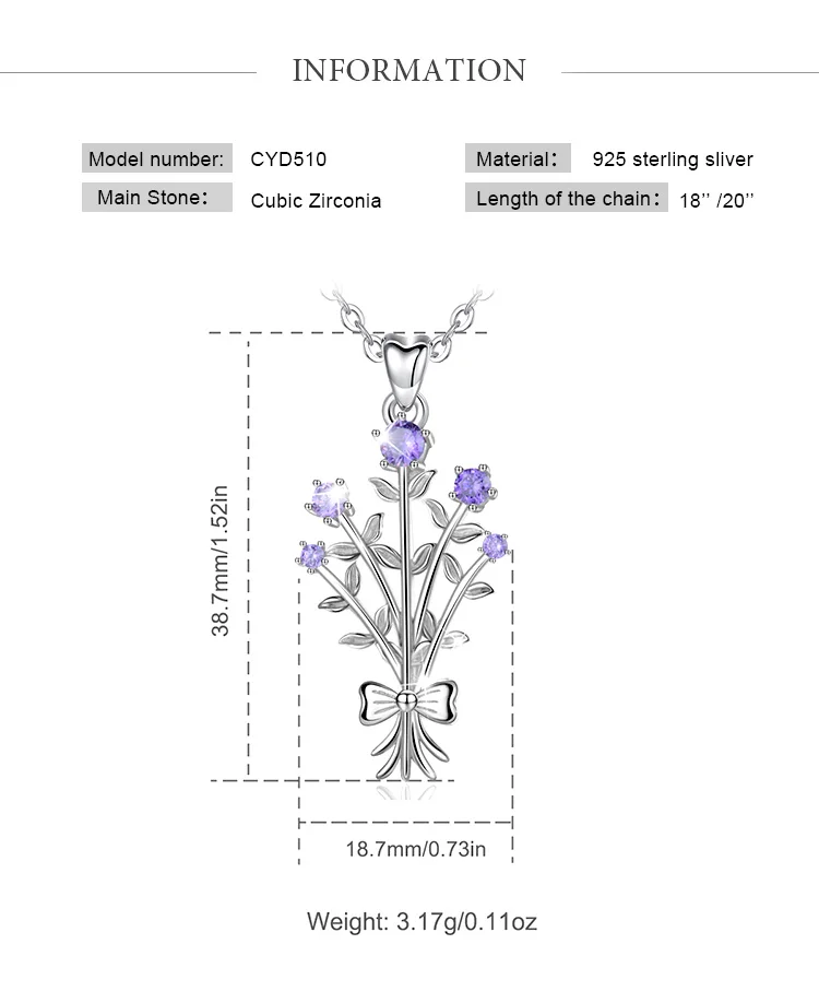 EUDORA Настоящее серебро 925 пробы фиолетовое романтическое ожерелье с лавандой кулон с фиолетовым CZ женские модные ювелирные изделия с коробкой D510