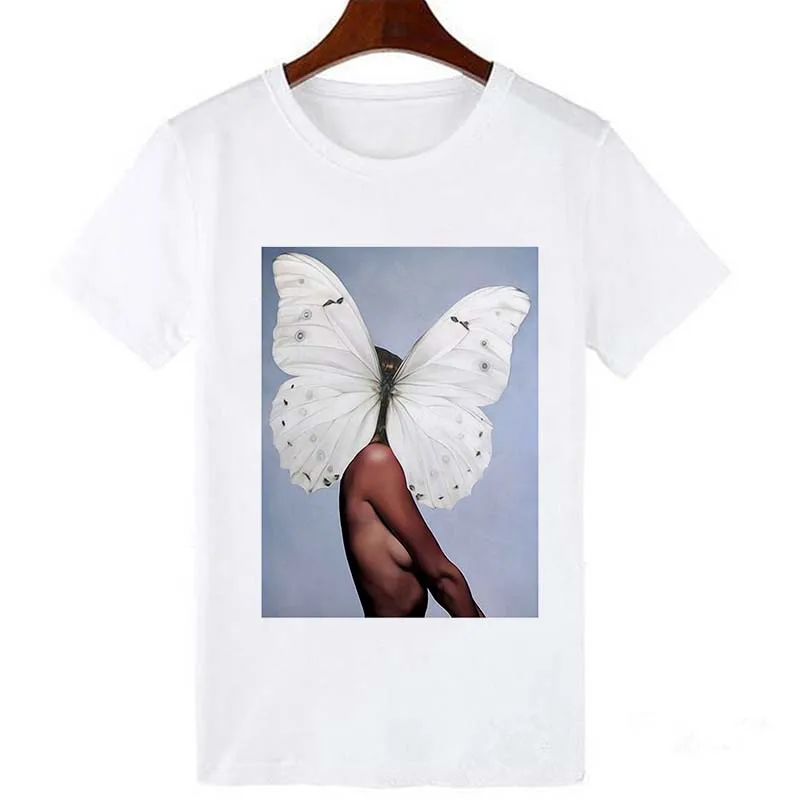 Женская футболка с принтом бабочки, топы, футболки с коротким рукав...