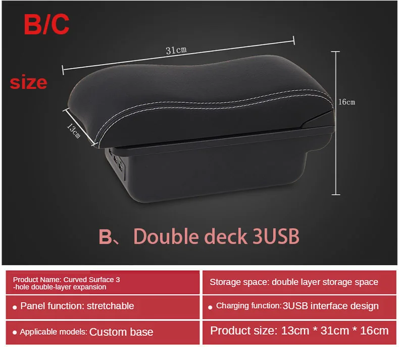 B, маленький двойной слой 3USB (кабель передачи данных и зарядное устройство)