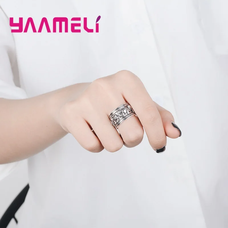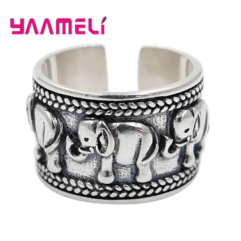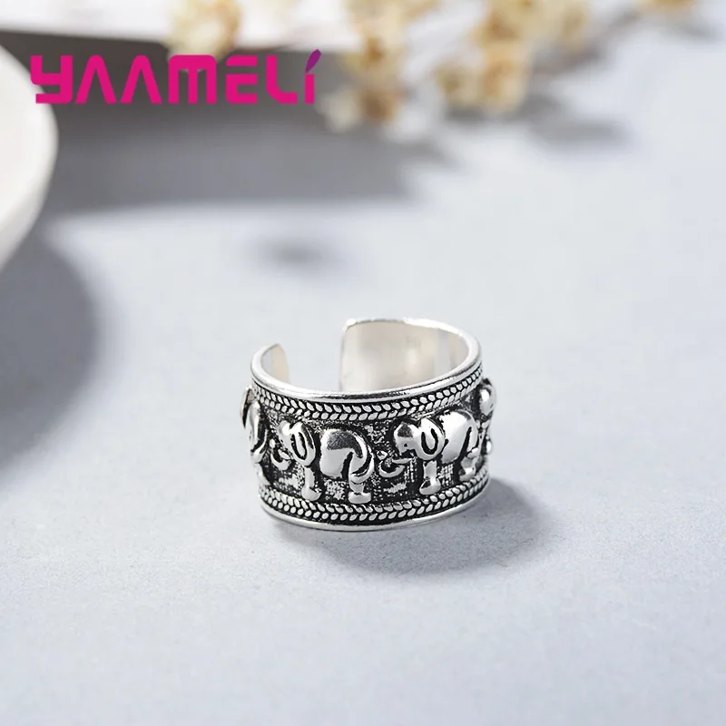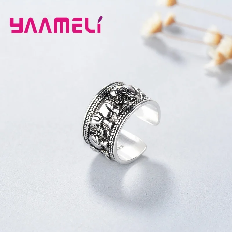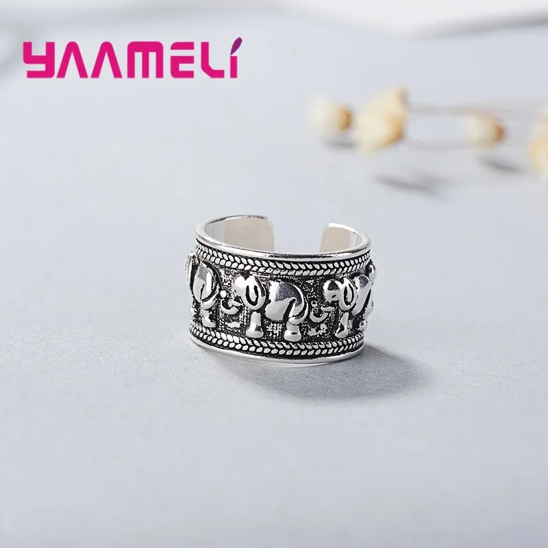 Юбилейные ювелирные изделия открытые регулируемые женские кольца без мозаики с животным Рисунком Слона аксессуары из стерлингового серебра 925 пробы