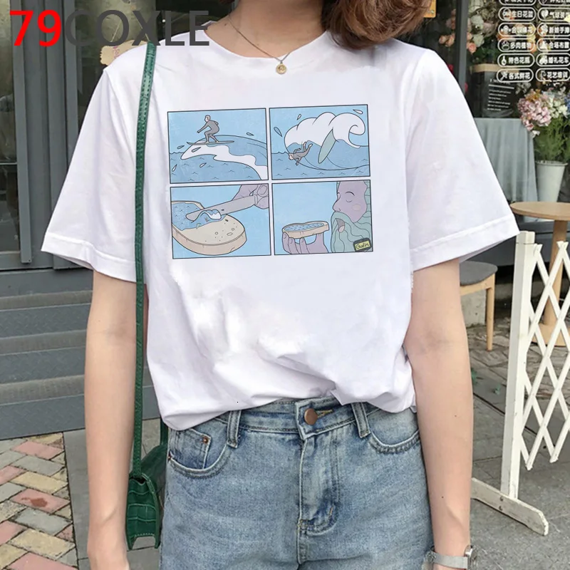 Футболка женская Kawaii, с рисунком кота и акулы, в стиле аниме Хар...