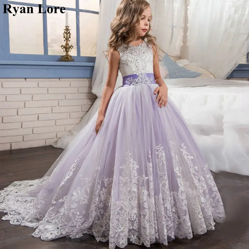 Элегантные платья для девочек с цветочным принтом 2020 фиолетовые аппликации без рукавов Детские платья принцессы на свадьбу платье для первого причастия наряды для конкурса