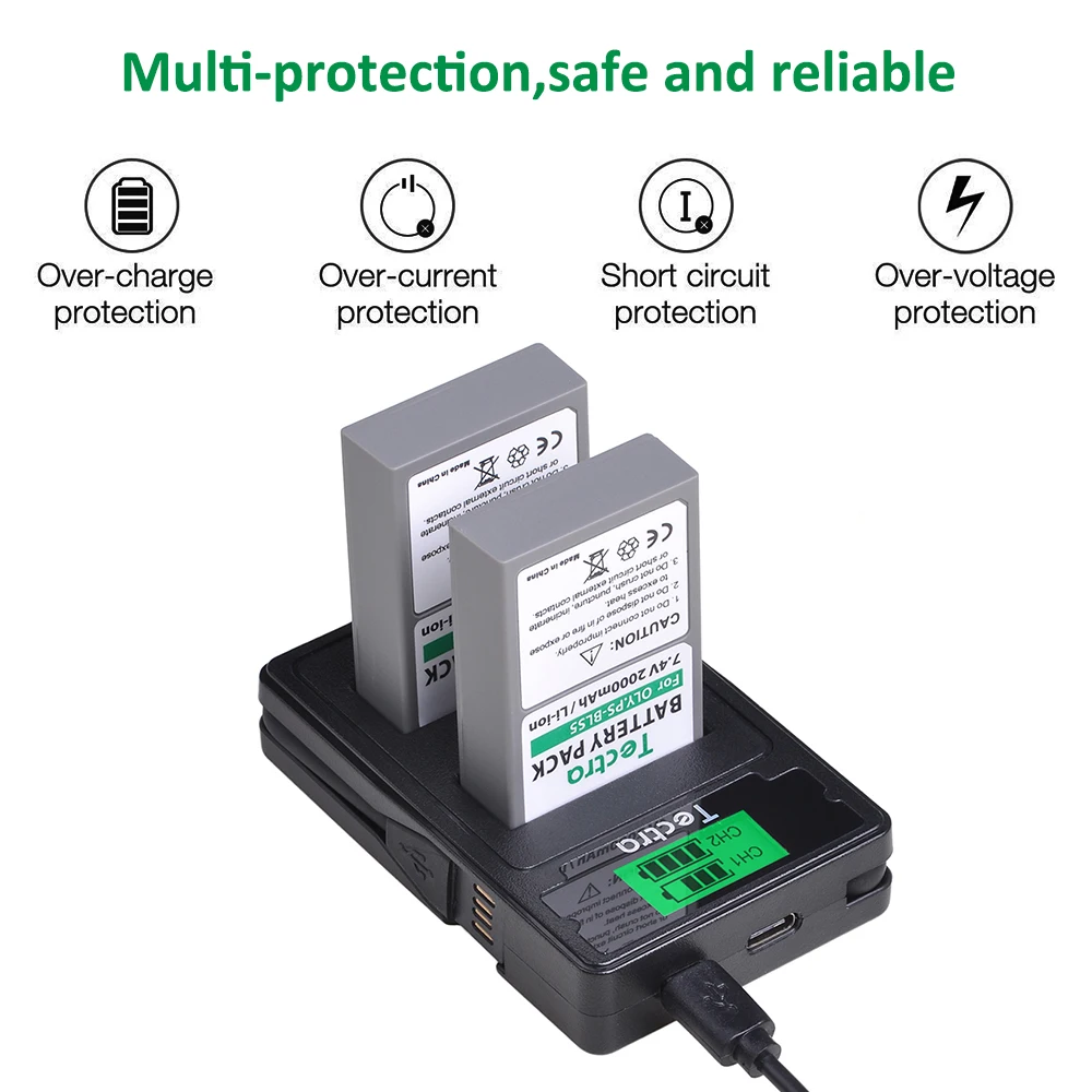 Tectra 2 шт 2000mAh PS-BLS5 BLS-5 BLS5 BLS-50 BLS50 батарея + LCD двойное зарядное устройство с портом типа C для Olympus PEN E-PL2,E-PL5,E-PL6,E-PL7,E-PM2