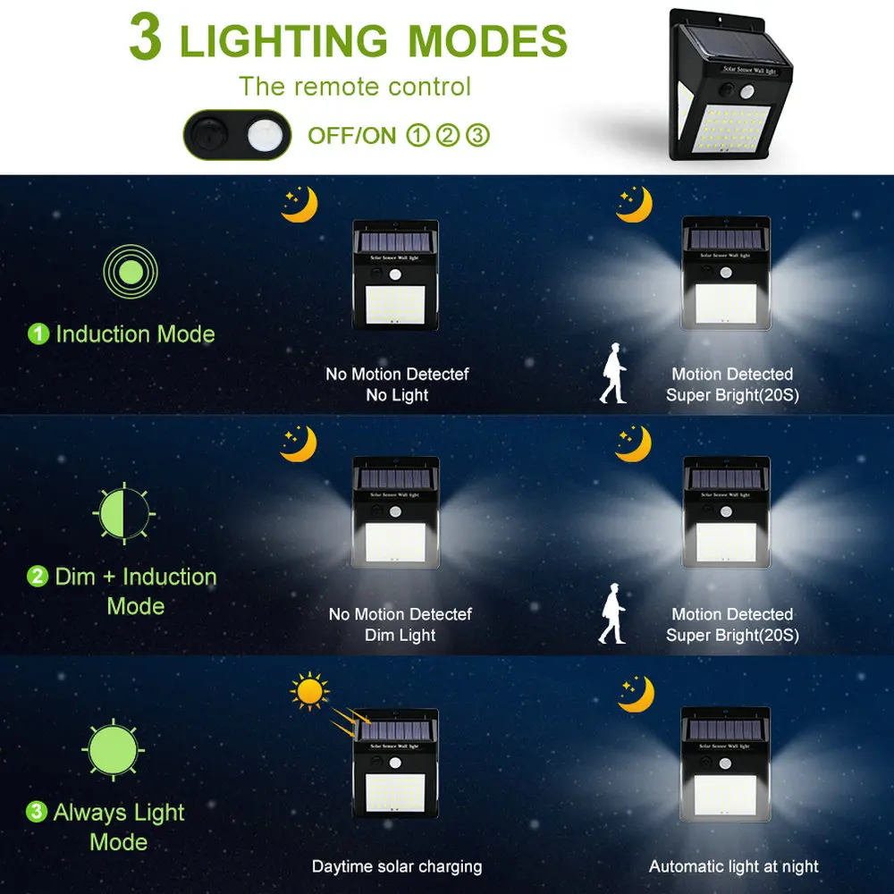 Светодиодный уличный светильник на солнечной батарее, 3 режима, настенный светильник с пассивным ИК датчиком движения, водонепроницаемый солнечный светильник для украшения сада