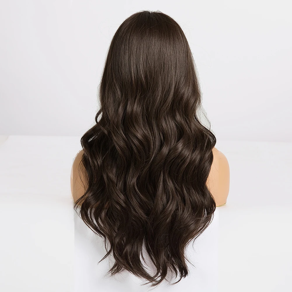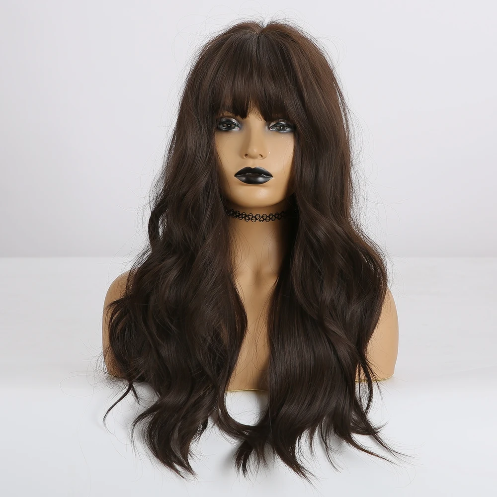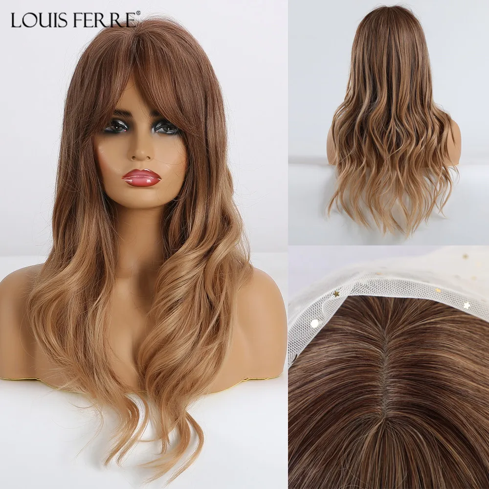 Длинные волнистые парики LOUIS FERRE с челкой, темно-коричневый парик для чернокожих женщин, косплейежедневные искусственные волосы, синтетический высокотемпературный парик