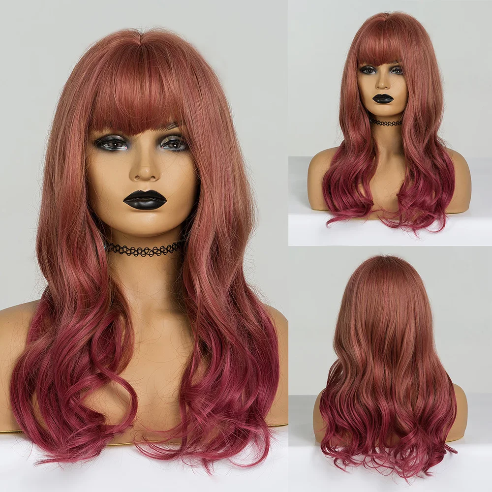 Парики с челкой для женщин, Длинные Синтетические волосы с волнами,...