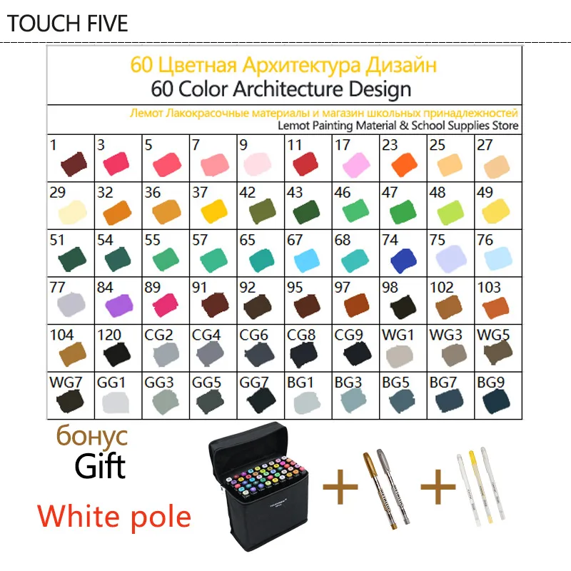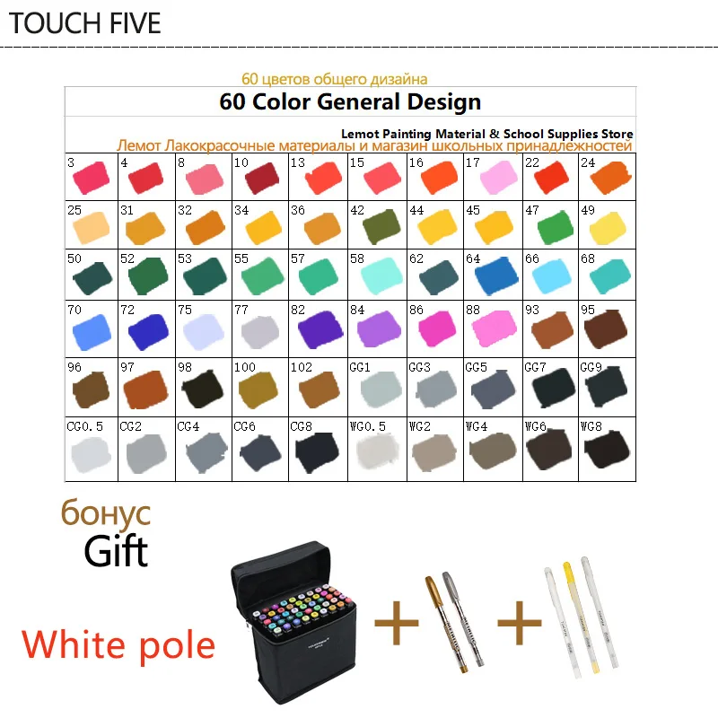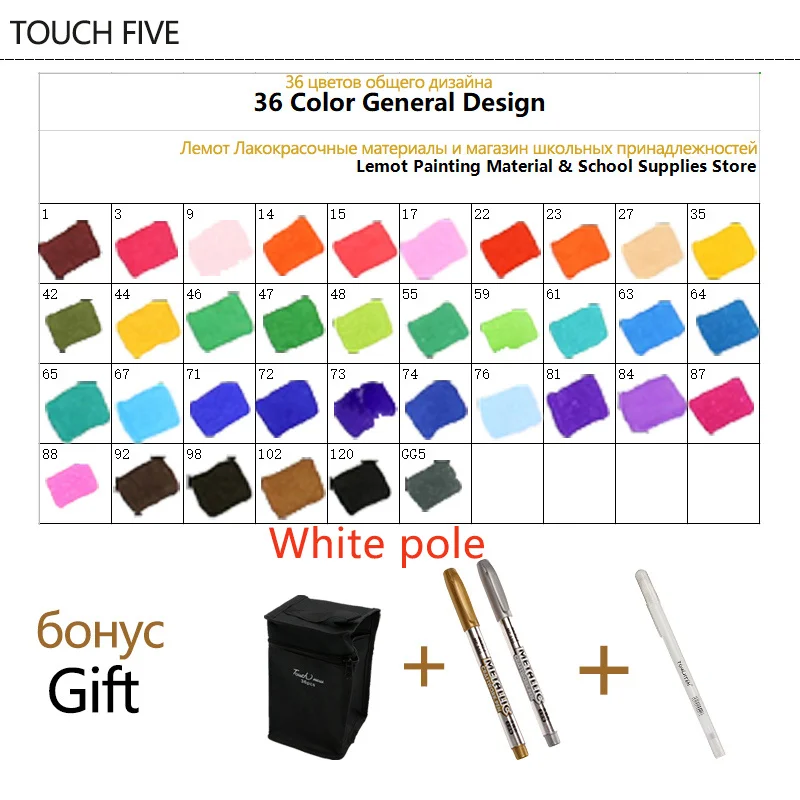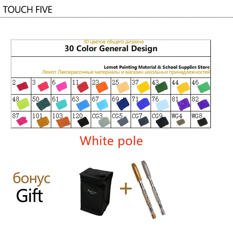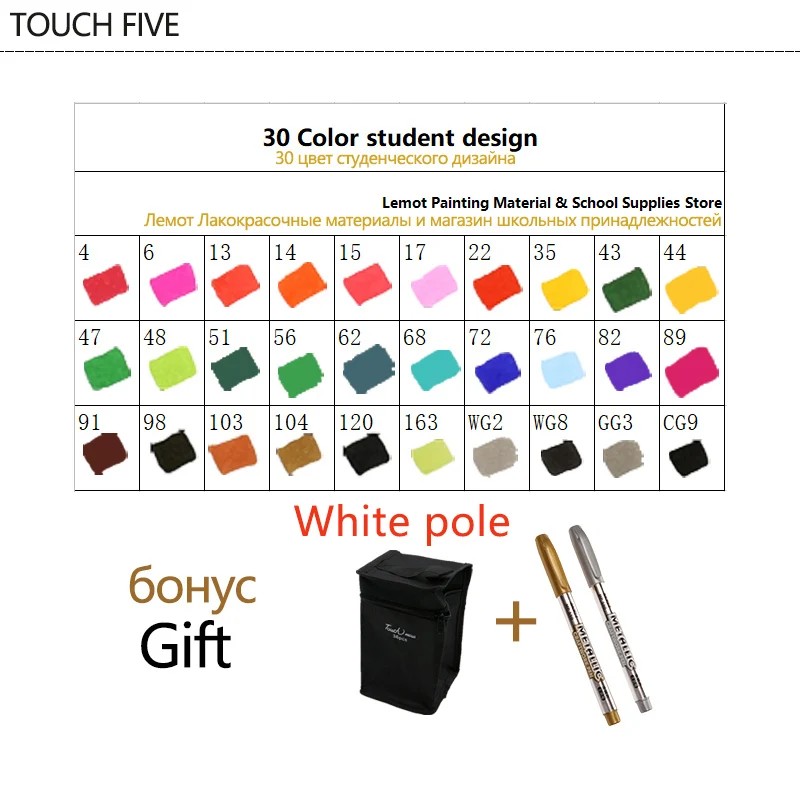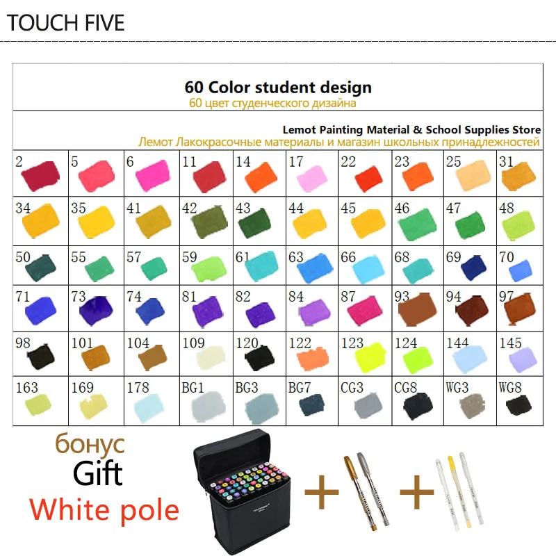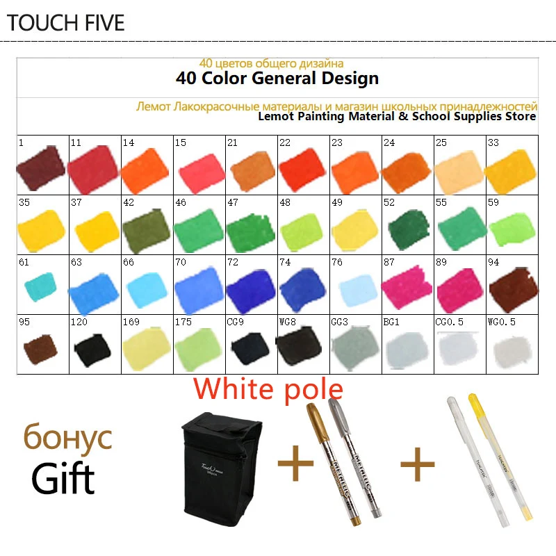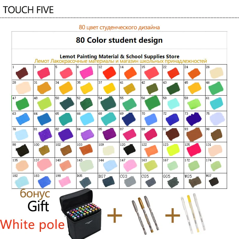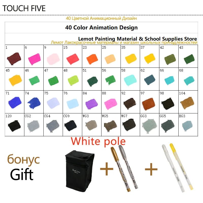 Набор маркеров TouchFive, 30406080168 цветов, студенческие дизайнерские спиртовые скетч-маркеры для рисования манги, белая ручка