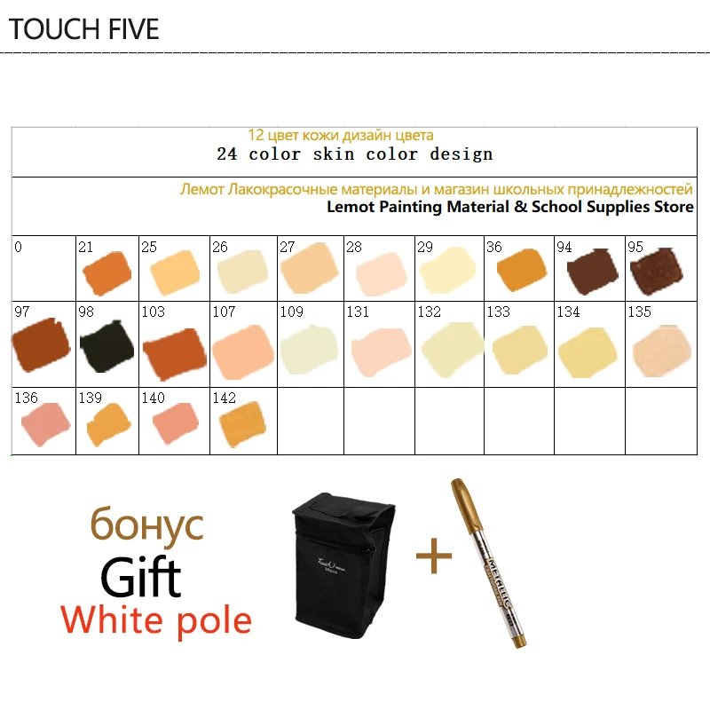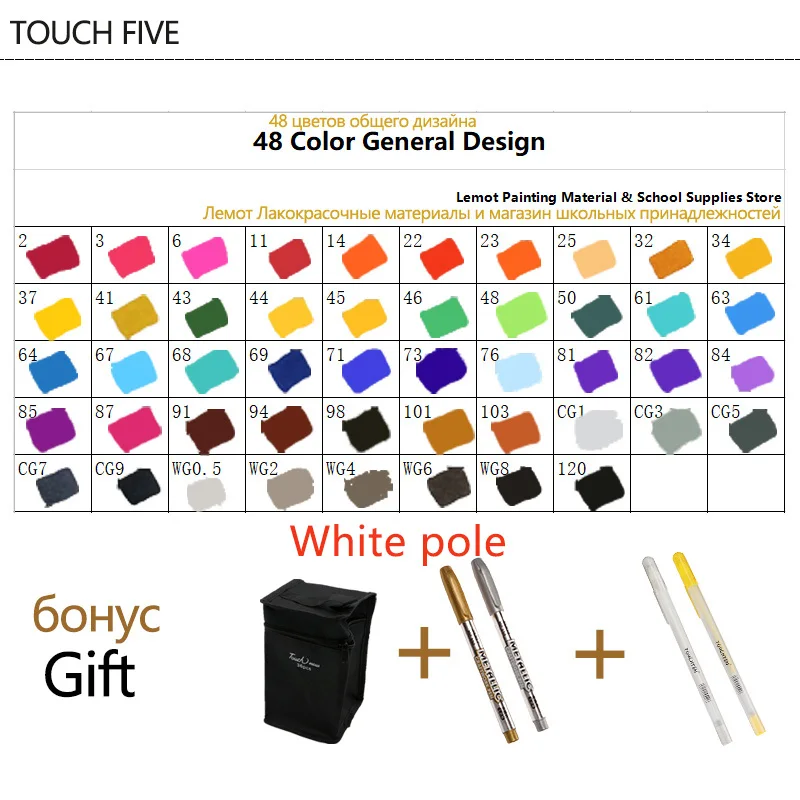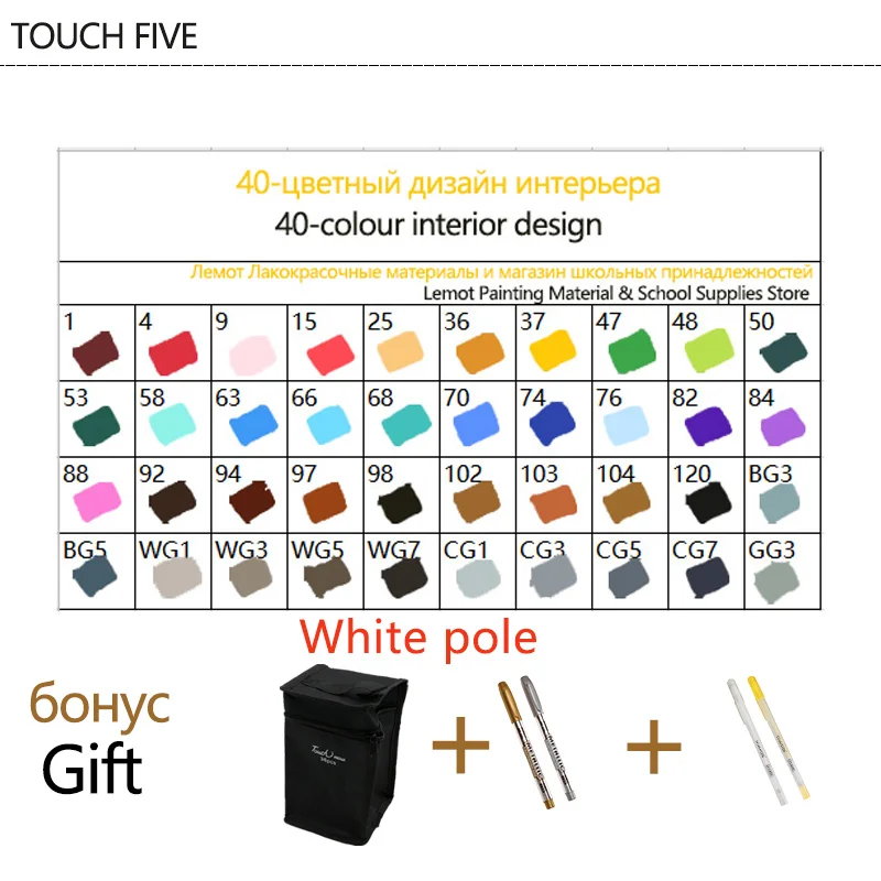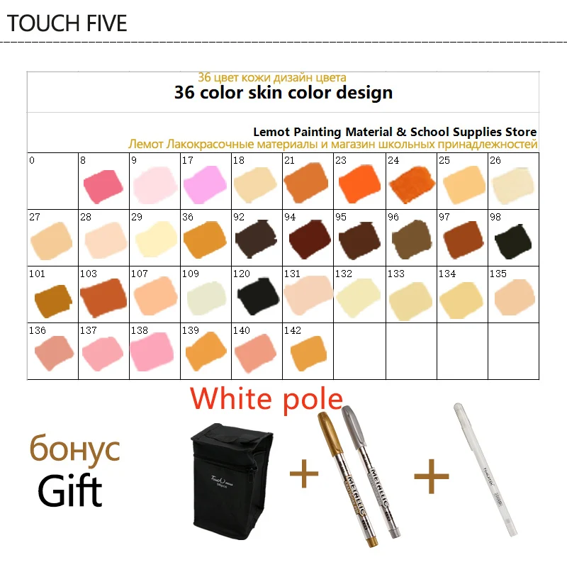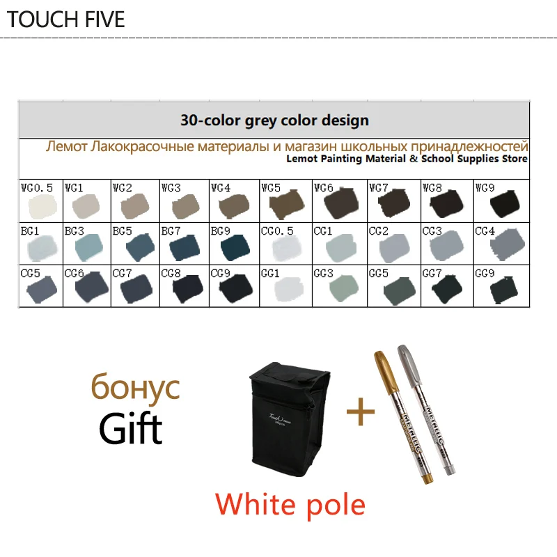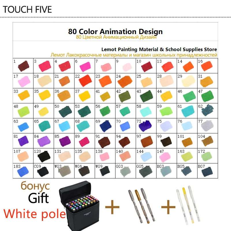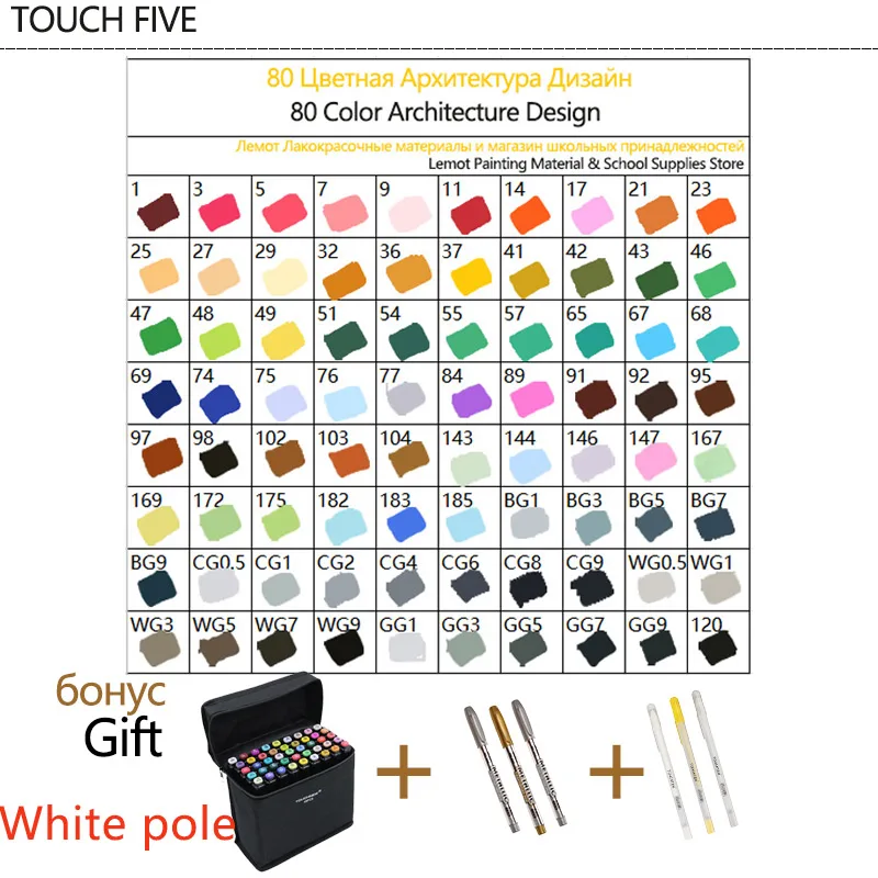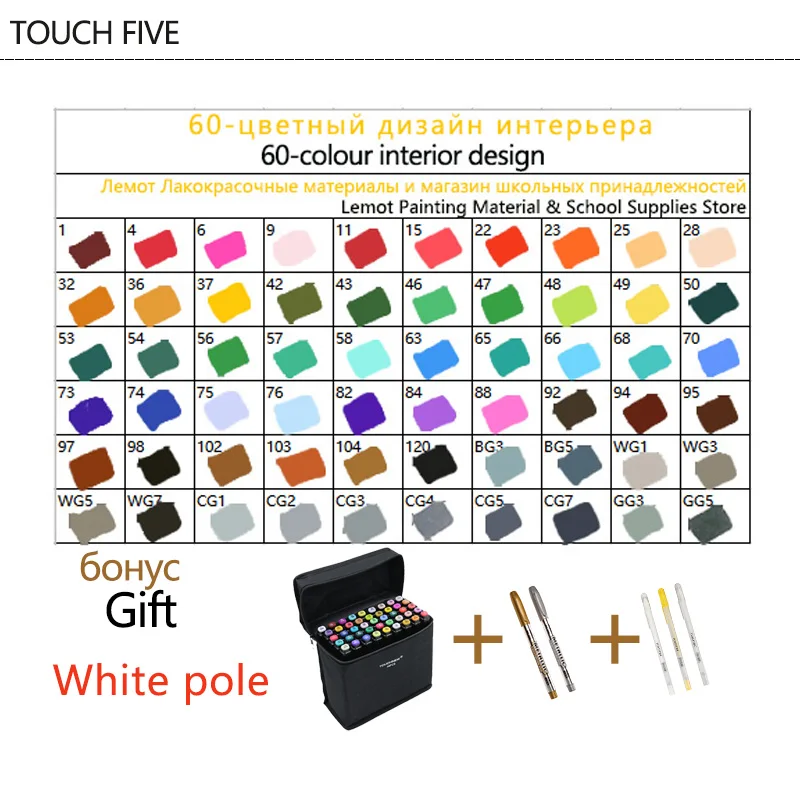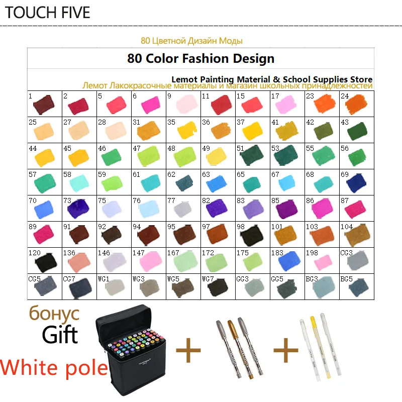 Набор маркеров TouchFive, 30406080168 цветов, студенческие дизайнерские спиртовые скетч-маркеры для рисования манги, белая ручка