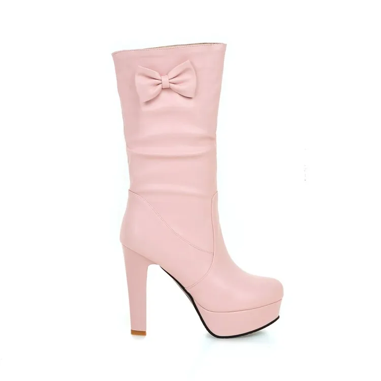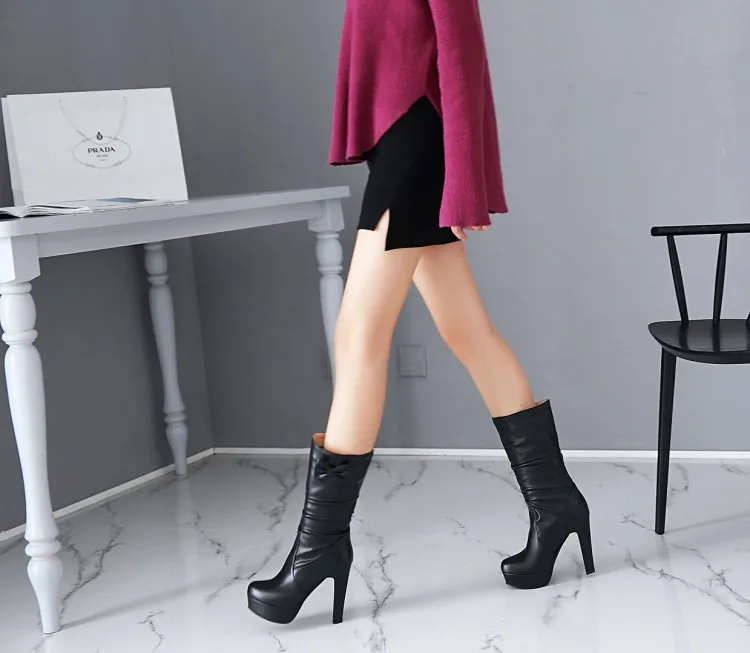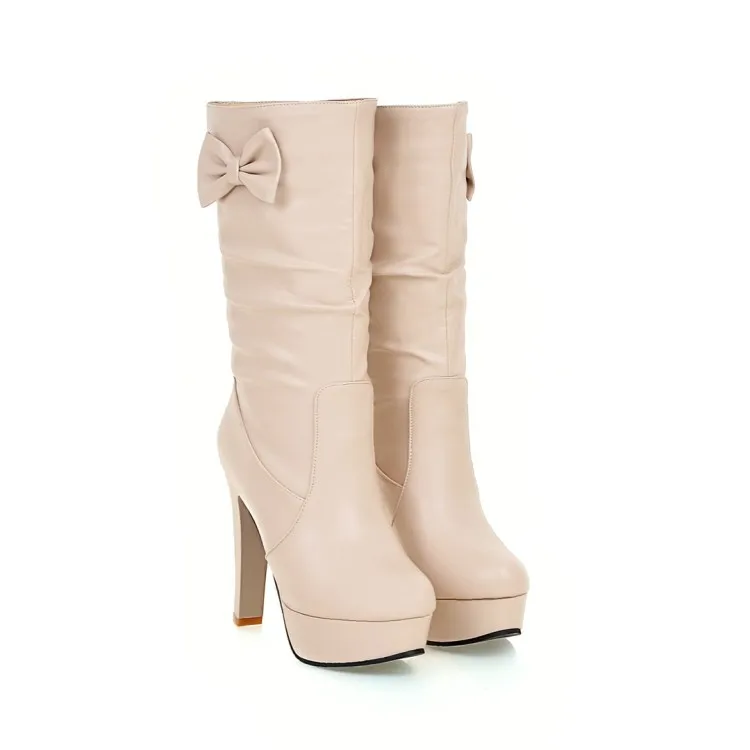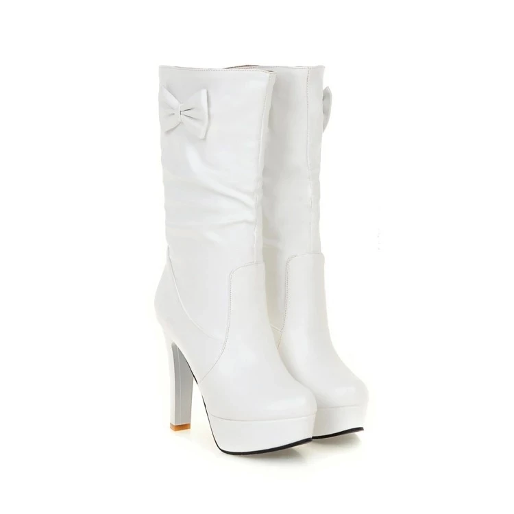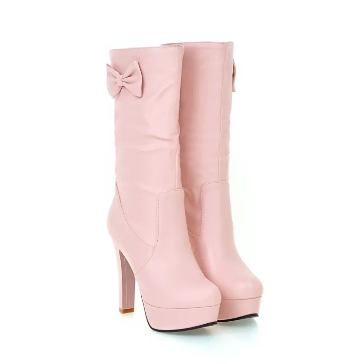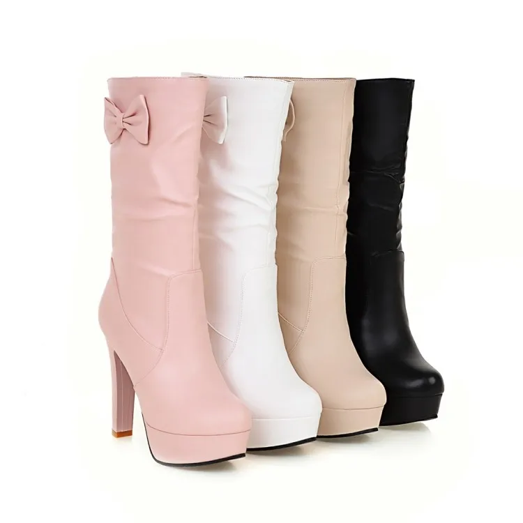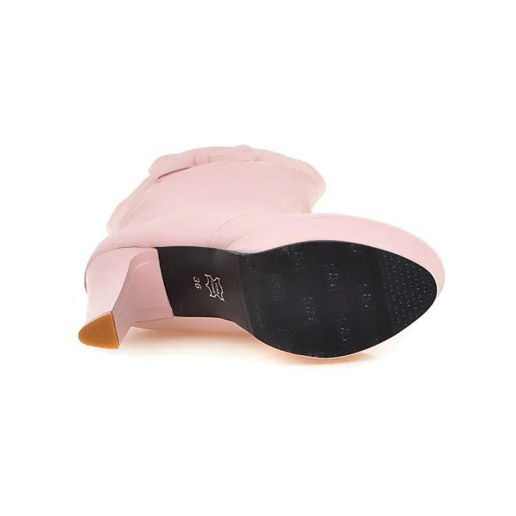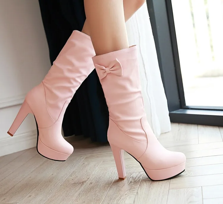 Большие размеры 9, 10, 11, 12; Сапоги; Женская обувь; Женские сапоги; Кожаные сапоги с бантом