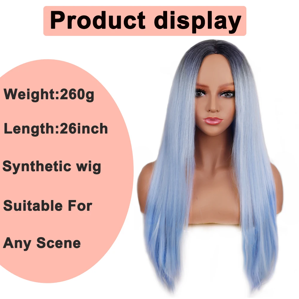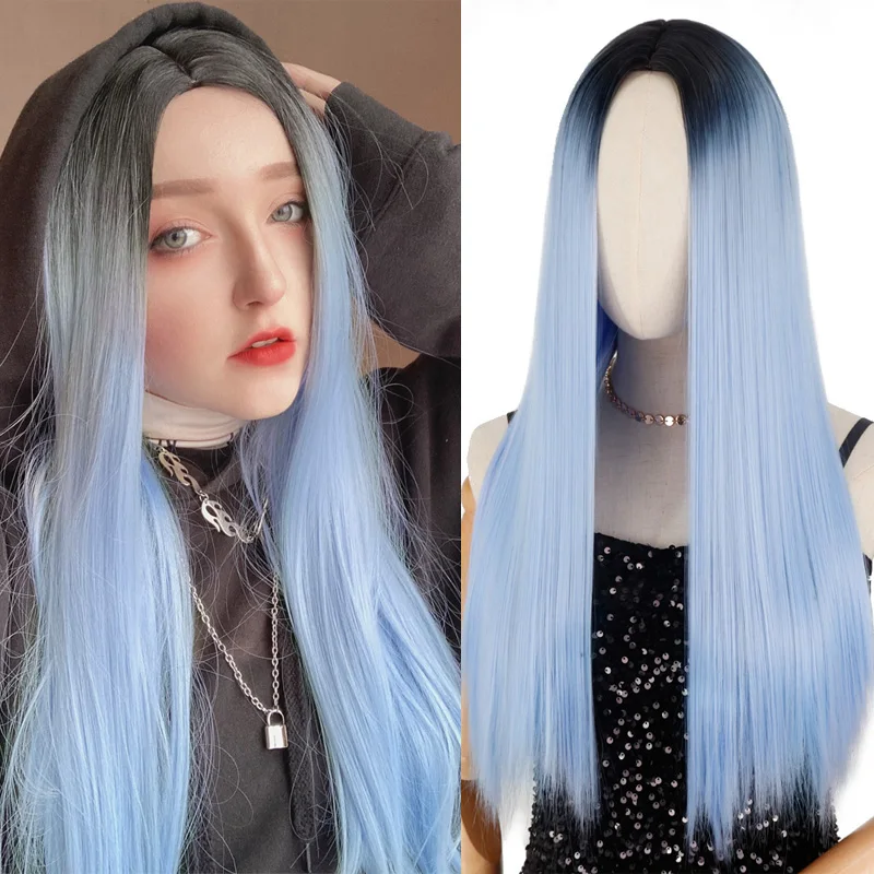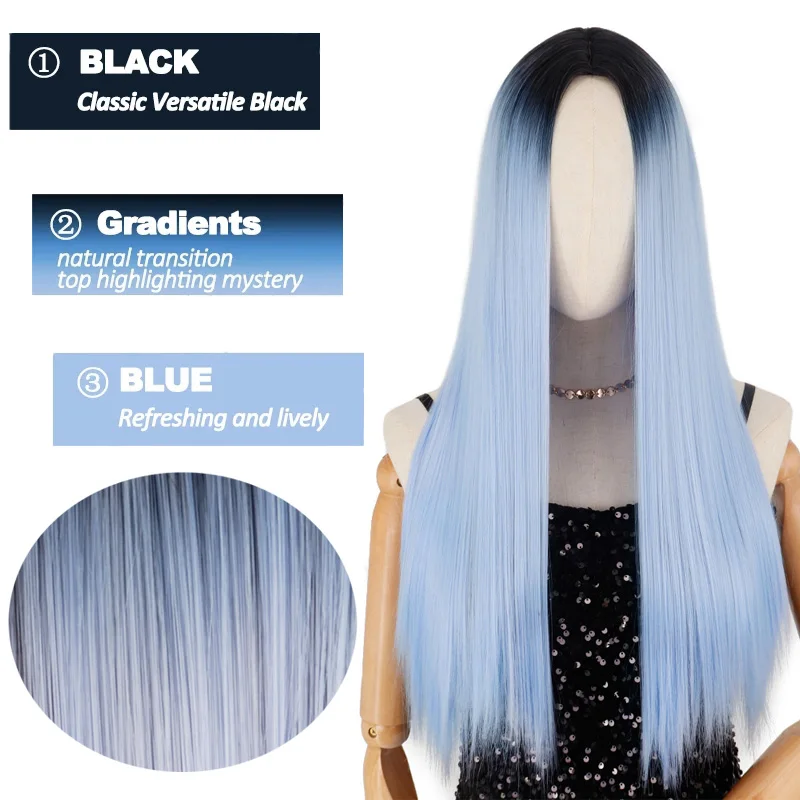 Linghang, длинный прямой черный синий парик, синтетические парики для женщин, парик из термостойкого волокна, для косплея