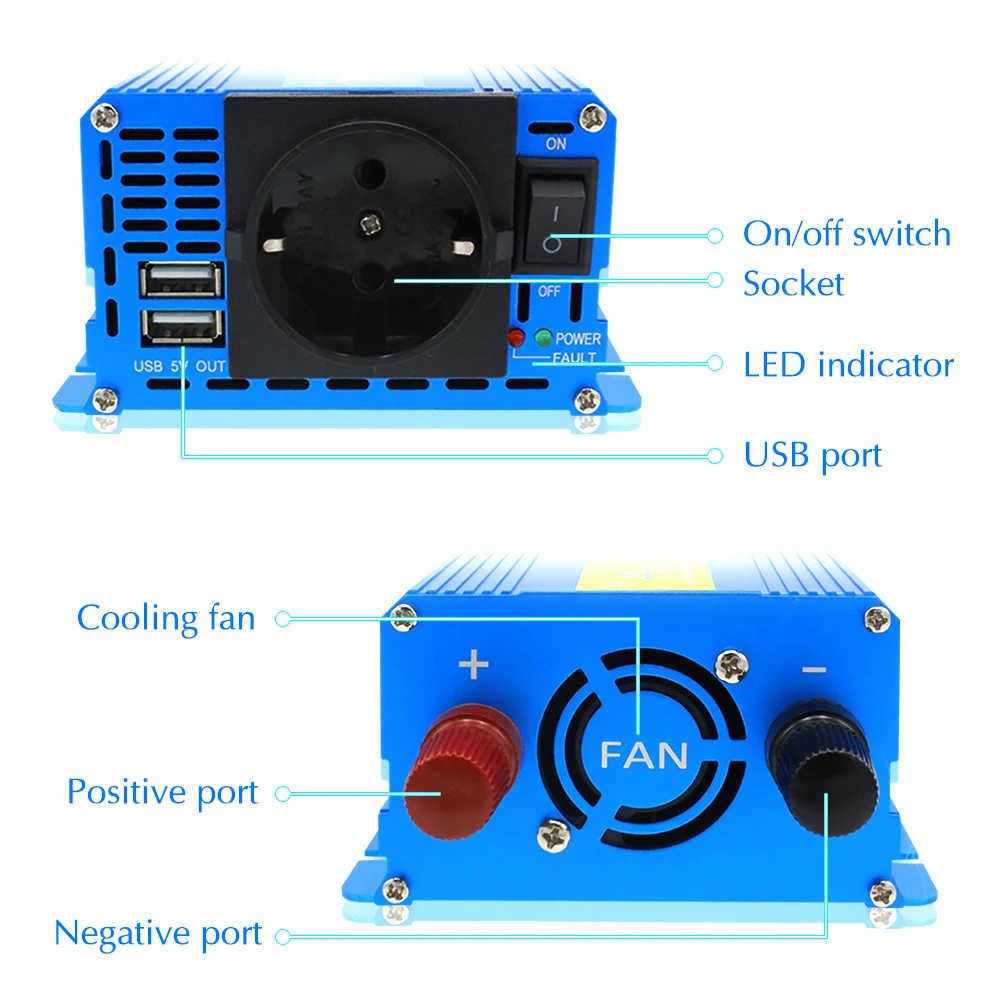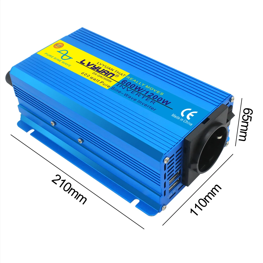 -Форма выходного сигнала: чистая Синусоидальная волна-Пиковая выходная мощность: 1200 Вт-Непрерывная выходная мощность: 600 Вт-Частота: 50 Гц/60 Гц-Без нагрузки ток: <0,8 ампер-Эффективность преобразования:>90%-Входное напряжение постоянного тока: 12 В-DC Напряжение диапазон: 9V-15,5 V-Выходное напряжение переменного тока: 220 В-Диапазон напряжения переменного тока: 210-240 В-Низкая Напряжение сигнализации: 10V постоянного тока ± 0,5 V-Низкая Напряжение выключается: 9 В переменного тока ± 0,5 V-Перегрузка: выключить выход-По сравнению с Напряжение выключается: 15,5 V-Перегрев: выключить выход автоматически-Предохранители: короткое замыкание-Старт: мягкий старт-Гарантия: 1 год-Размер машины: 210 мм * 110 мм * 65 мм-Вес: 0,8 кг-Материал: алюминиевый сплав-Тип гнезда: ЕС-8 функции защиты:①Reverse защита от обратной полярности②Низкое входное напряжение? Защита③ Защита от высокого входного напряжения④ Защита от перегрузки по току⑤Short защита от короткого замыкания⑥Over защита от высоких температур⑦Overload защиты⑧Internal предохранители