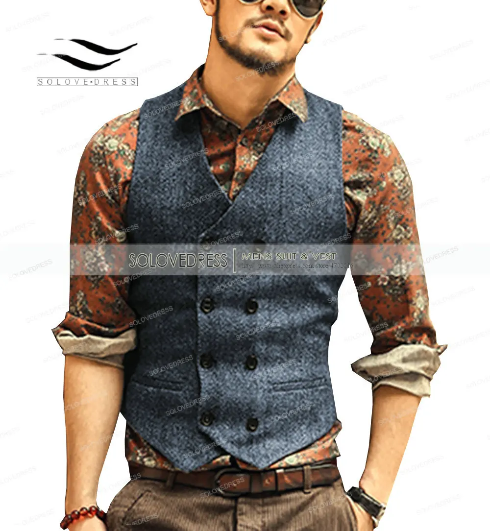 Жилет Мужской приталенный из твида, хлопковый жилет в елочку, для с...