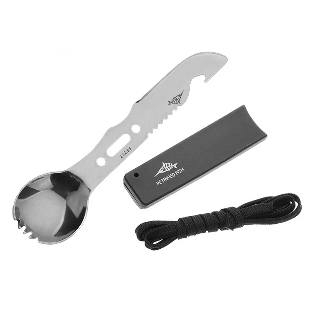 Многофункциональные инструменты для кемпинга на природе, портативная посуда из нержавеющей стали, посуда для кемпинга, походов, кухонная утварь, ложка, вилка, нож, открывалка для бутылок