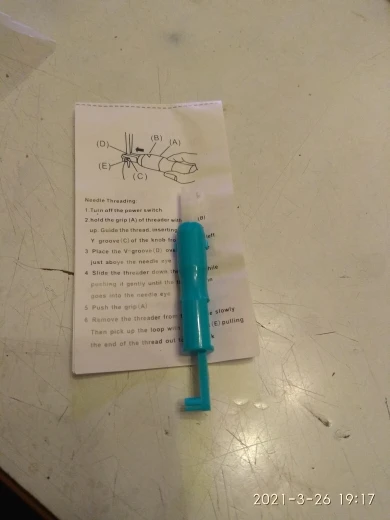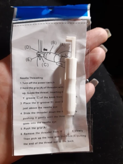 вдеватель нити в иглу швейной машины получила быстро,как работает еще не разобралась.Думаю,что справлюсь.Спасибо продавцу