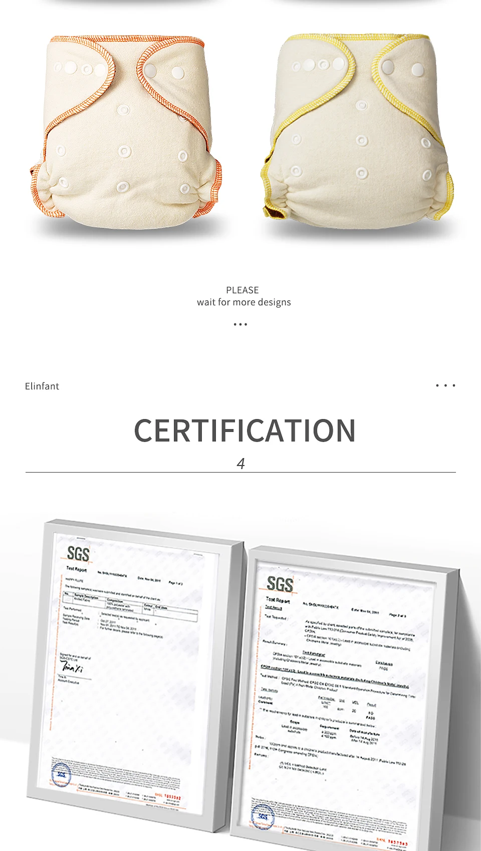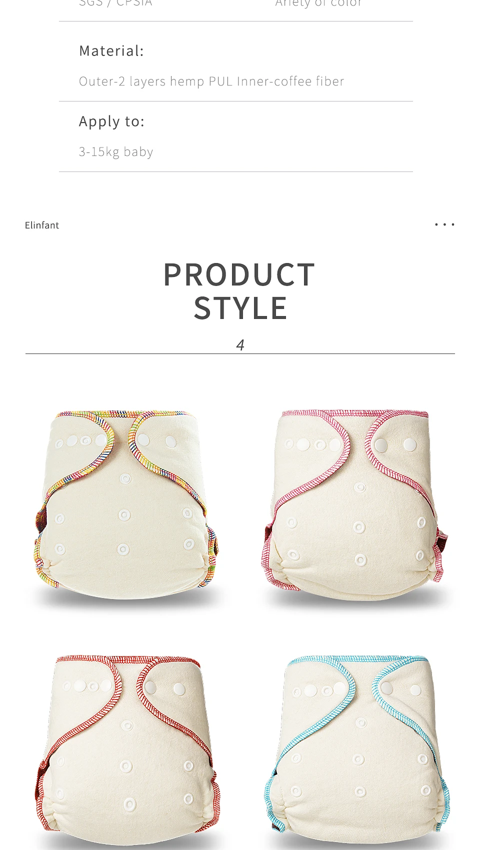 Elinfant Конопляный хлопковый Регулируемый тканевый ночной моющийся тканевый подгузник AIO подгузник кофейное волокно тяжелый влажный подгузник один размер
