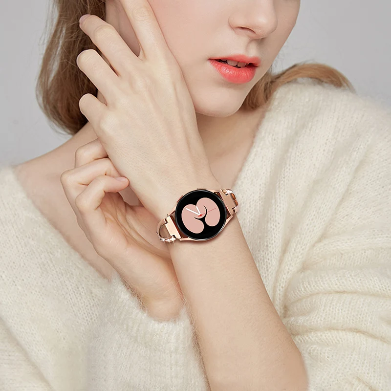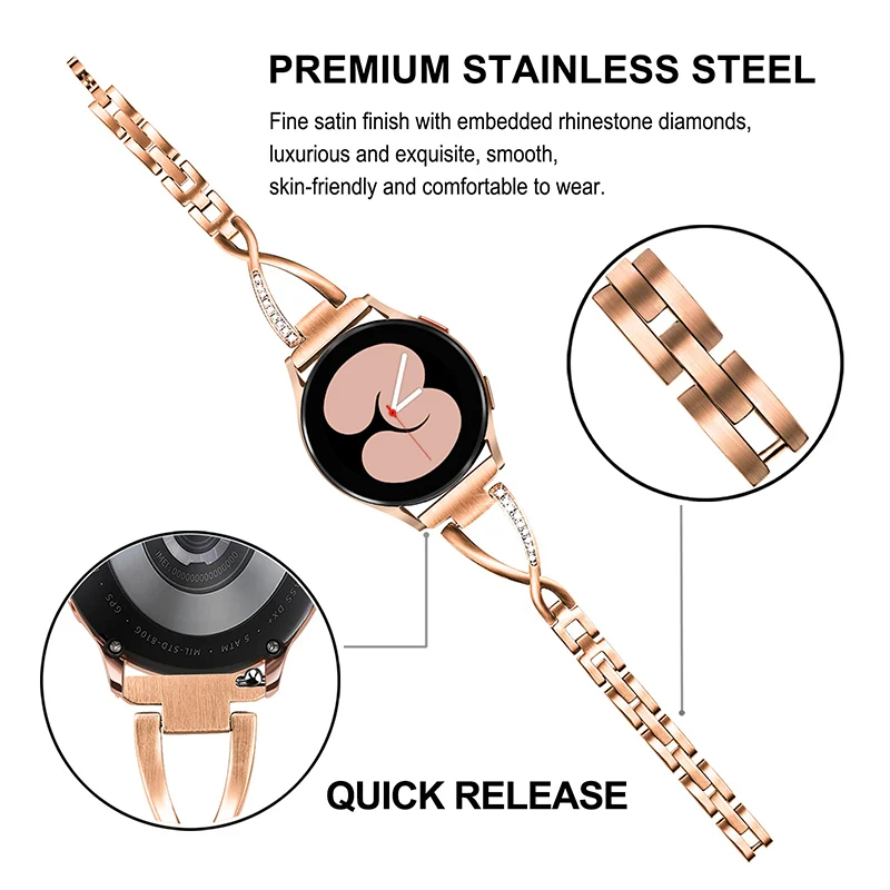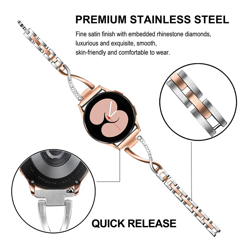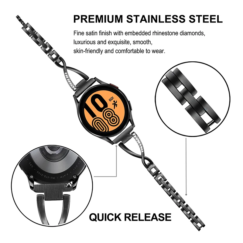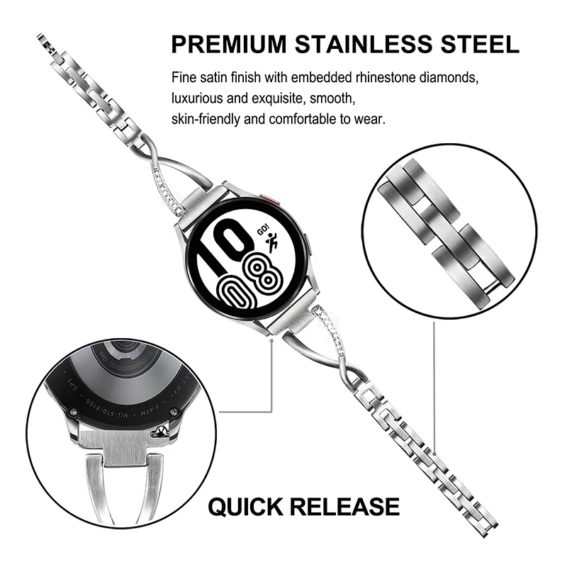 Ремешок из нержавеющей стали и кристаллов для Samsung Galaxy Watch 4 40 мм 44 мм
