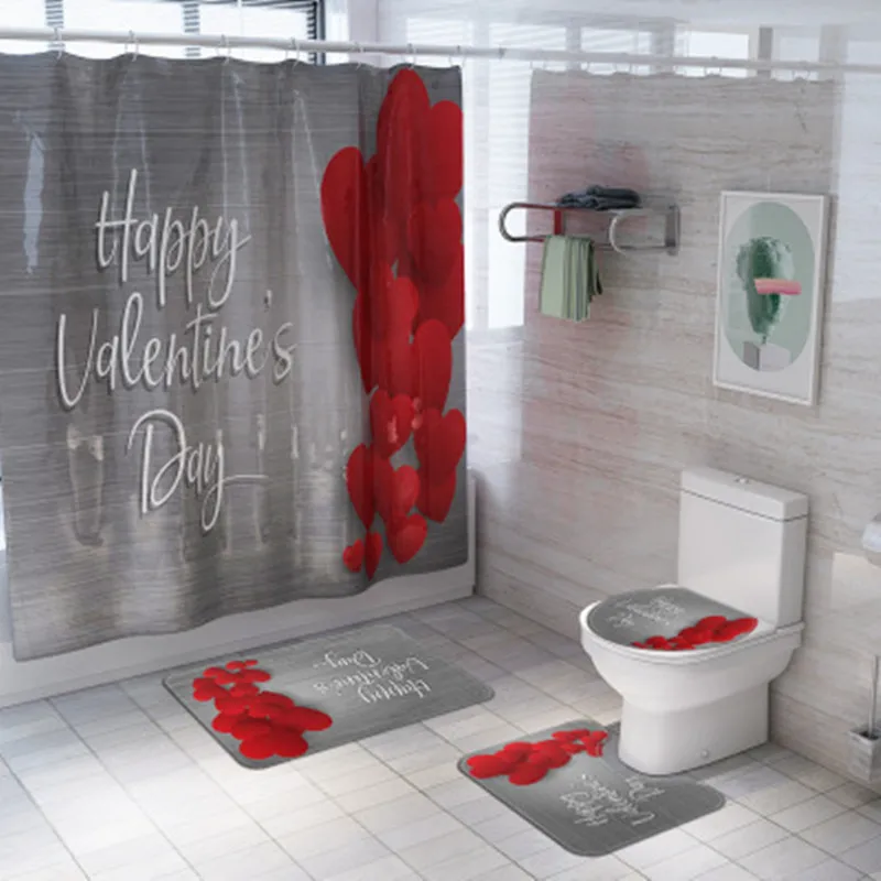 4 шт.компл. Ванная комната Комплект ковриков для Non-slip ко Дню Святого Валентина лепестки роз коврик для ванной душевая Шторы напольные коврики моющиеся Ванная комната туалет