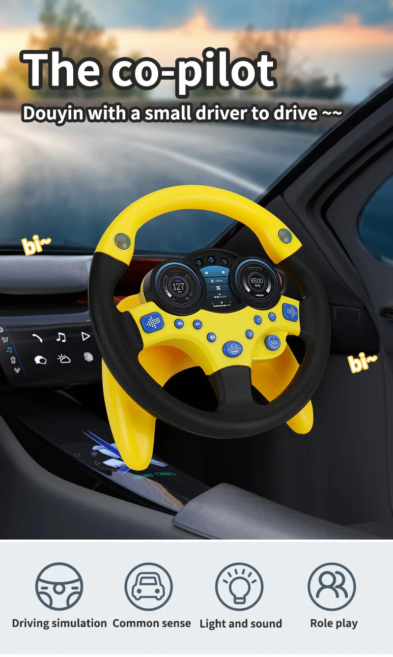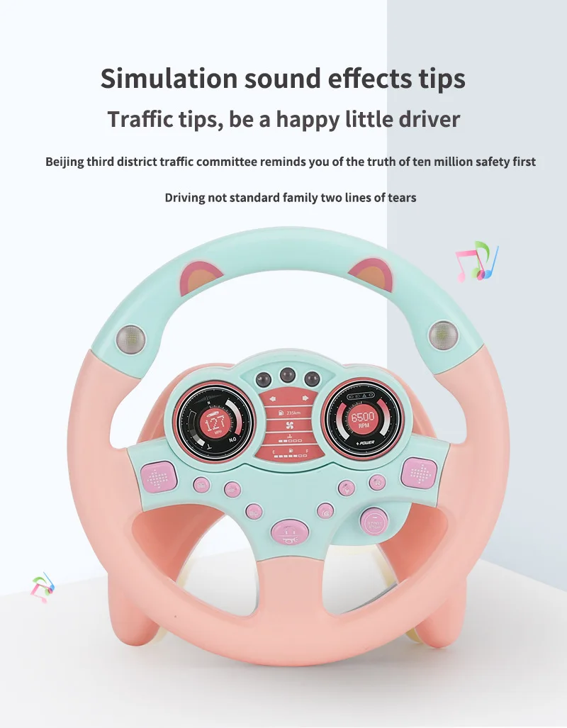 ** Игрушки для автомобильных колес имеют рулевое колесо со звуком и светильник.