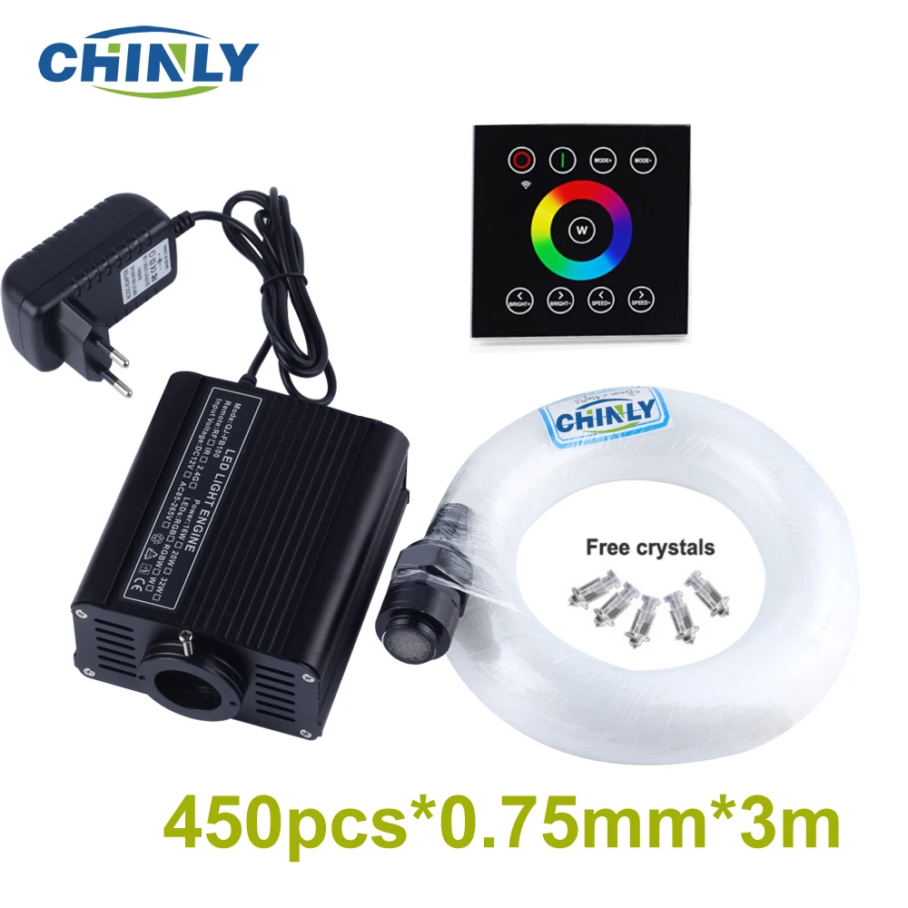 Светодиодный волоконно-оптический светильник RGBW, 16 Вт, 2,4G, беспроводной настенный переключатель, сенсорный контроллер, 3 метра, 450 шт., Звездный потолочный комплект, светильник s