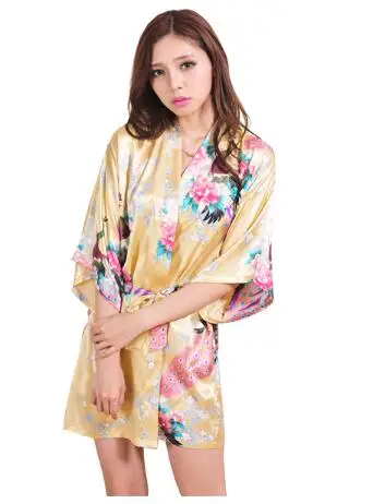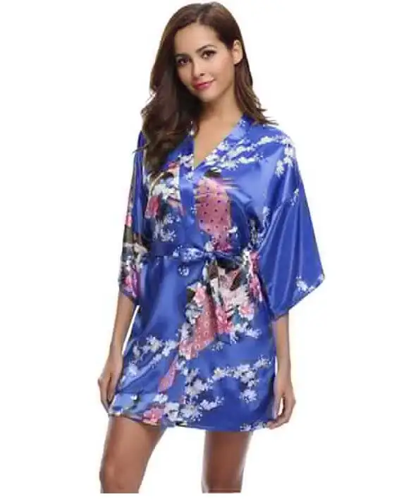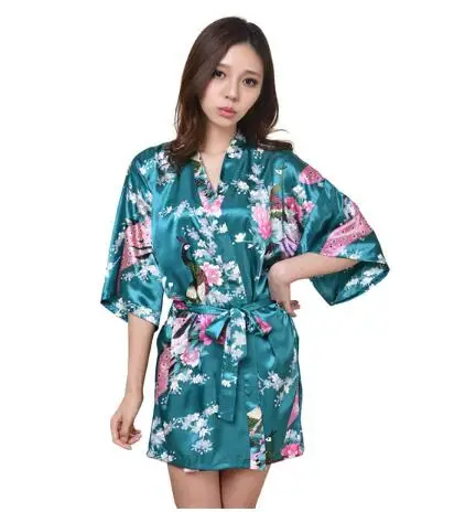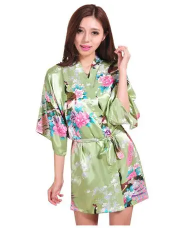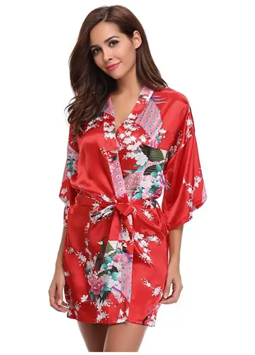 Silk Satin Wedding Bride Bridesmaid Robe Floral Bathrobe Short Kimono Robe Night Robe Bath Robe Fashion Dressing Gown For Women