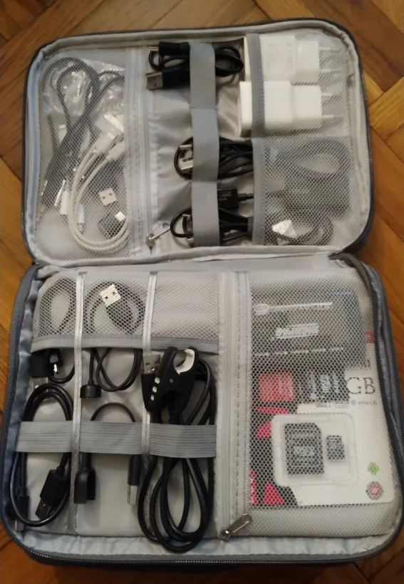 хорошая штука, выглядит качественно, ничего нигде не торчит. влезли почти все провода и лишние зарядные устройства
