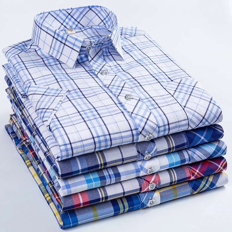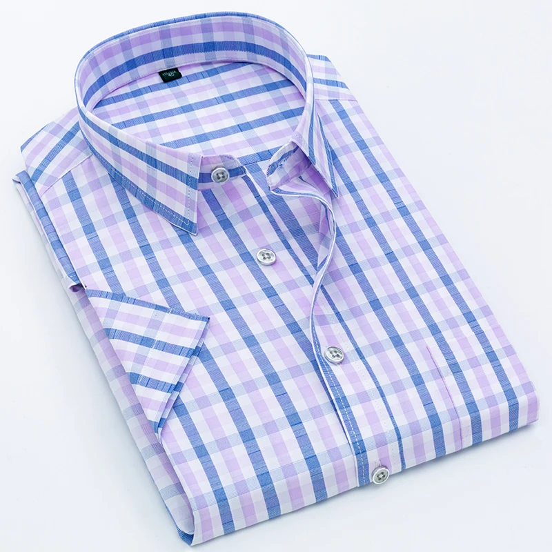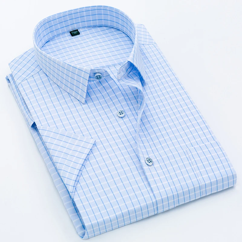 Рубашка мужская в клетку с короткими рукавами, формальная Блуза в полоску, повседневная приталенная рубашка с карманами, высокое качество, деловая Прямая поставка, лето 2020