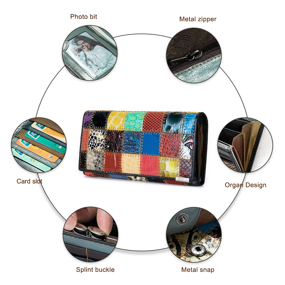 Женский кошелек из натуральной кожи WESTAL, длинный кожаный кошелек в стиле пэчворк, для карт, 544