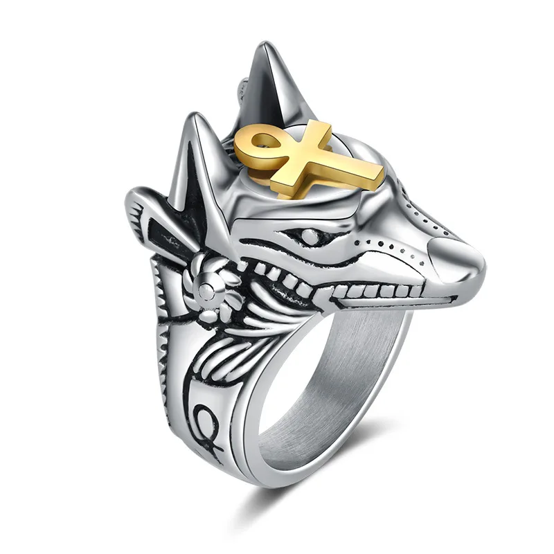 Кольцо унисекс из титановой стали для личной самозащиты, панк, анубис, египетский крест, зверь, анти-волка, кольцо на палец, винтажные кольца с волком, подарок