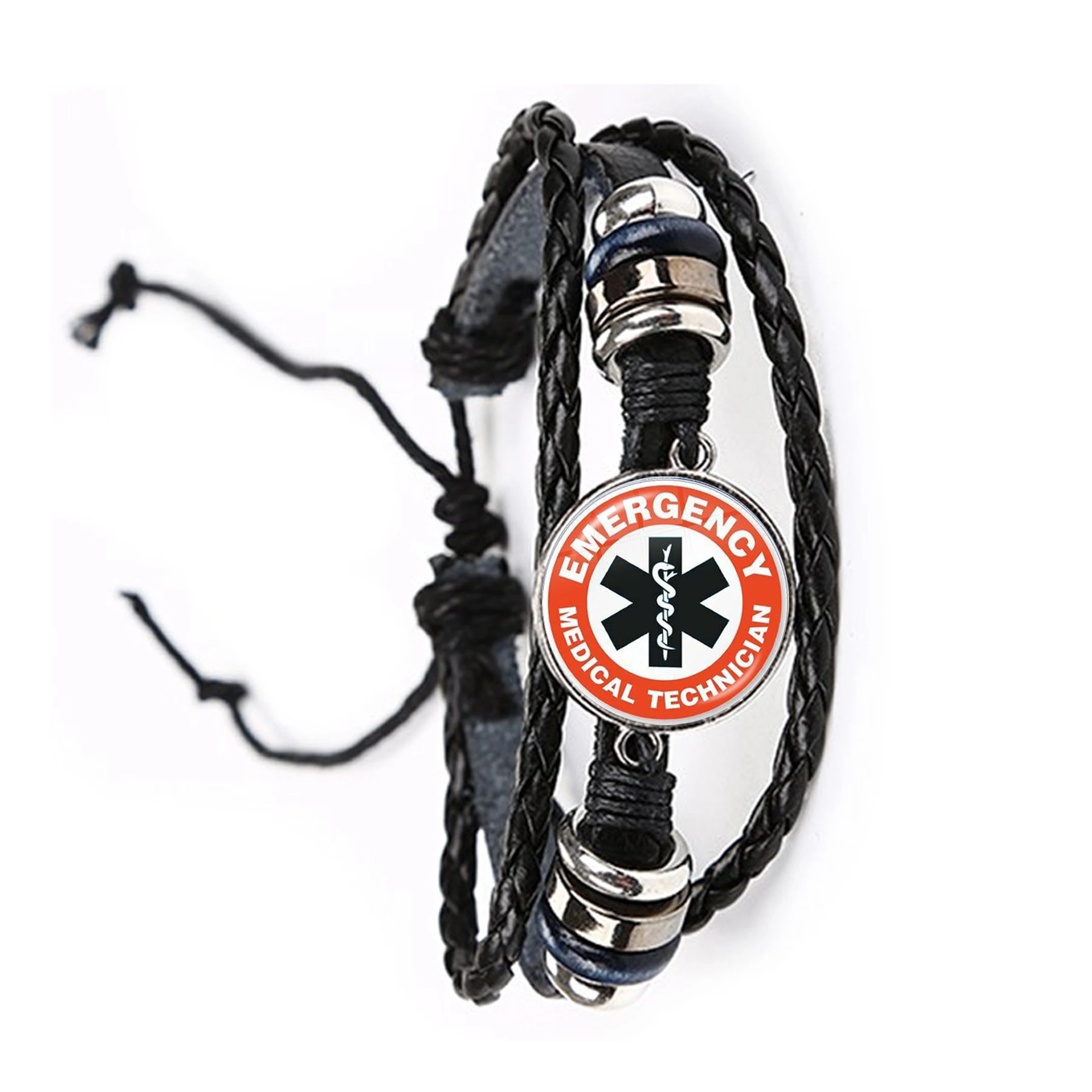 Черно-коричневый кожаный браслет EMT с медицинским символом, экстренный медицинский техник, цитата, логотип стеклянный браслет из кабошона, ювелирные изделия для подарка