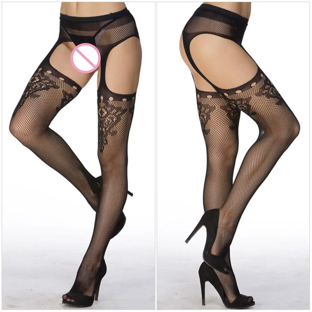 Модные женские сетчатые чулки в сеточку, сексуальные обтягивающие черные чулки, прозрачный пояс для чулок подвязки, колготки