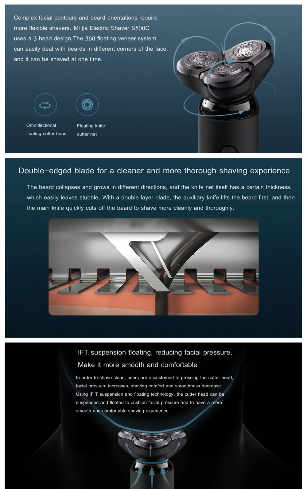 Электробритва Xiaomi Mijia S500C Мужская перезаряжаемая, с двумя лезвиями, для сухого и влажного бритья