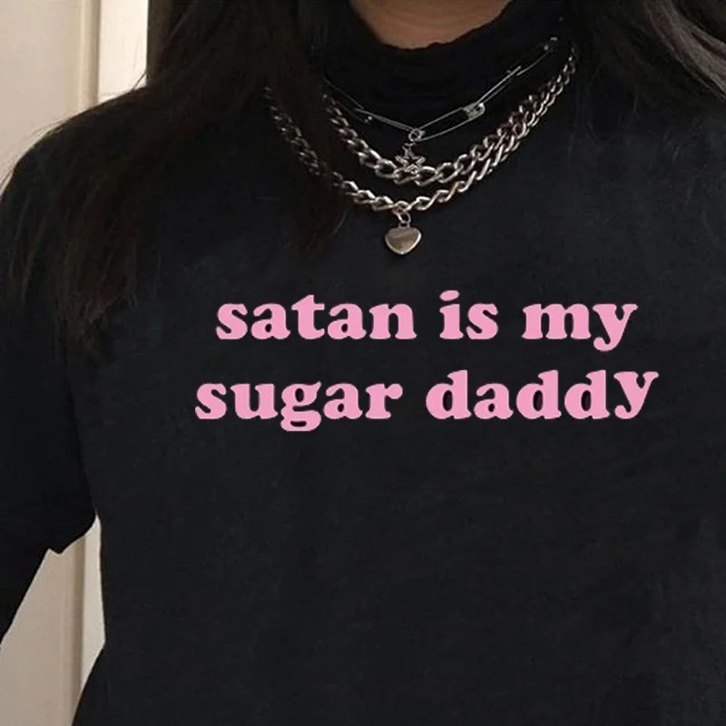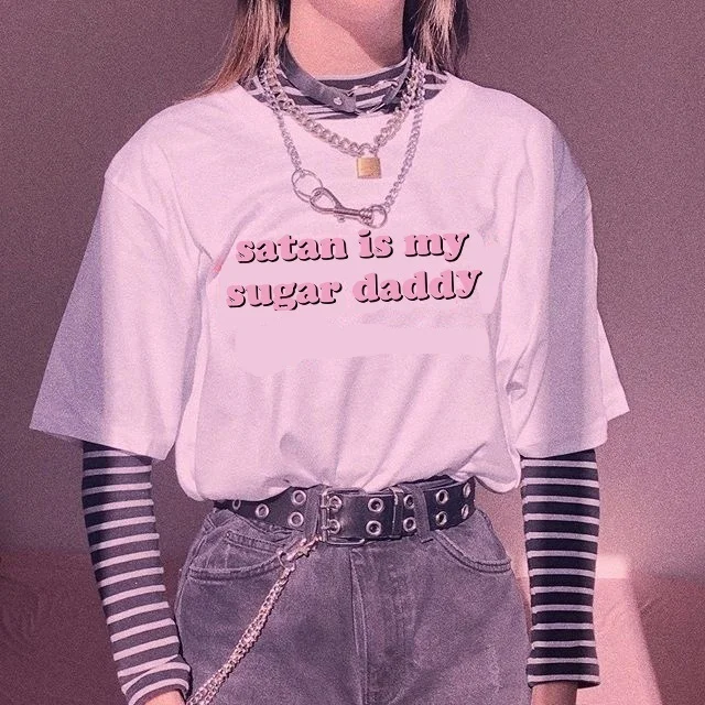 Летние модные топы VIP HJN, футболка с рисунком сатаны, моя сахарница, папа, Tumblr, рубашка для девочек, эстетическая одежда, кавайная футболка в стиле Харадзюку