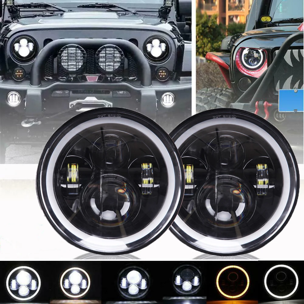 1 шт., 7-дюймовая светодиодная головсветильник лампа, угловой глаз, DRL, автомобильная светодиодная фара 12 В для неограниченного JK, 4-дверная, Land Rover Defender, 4x4, для внедорожника