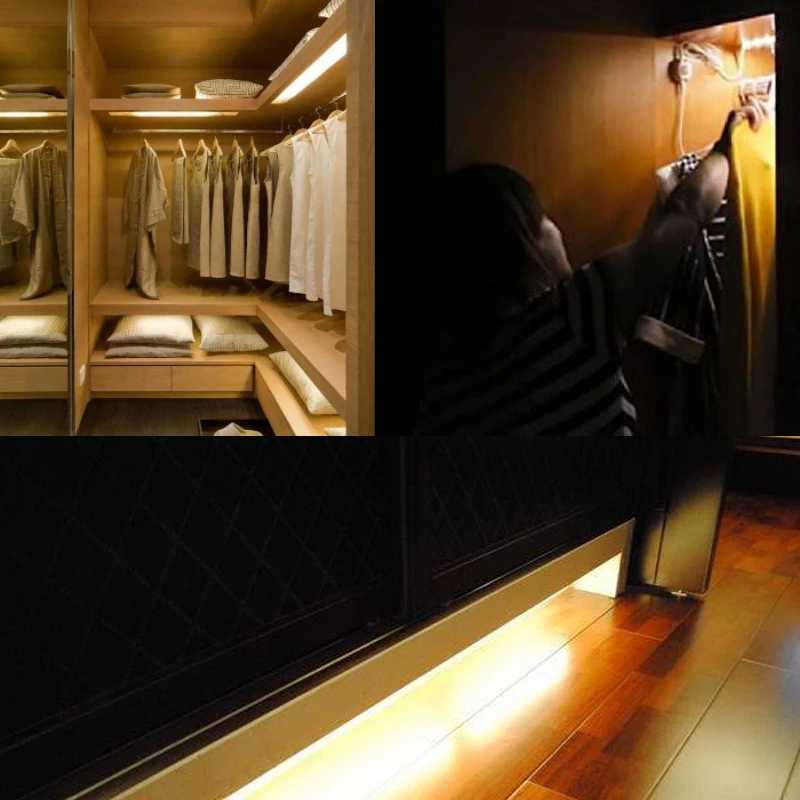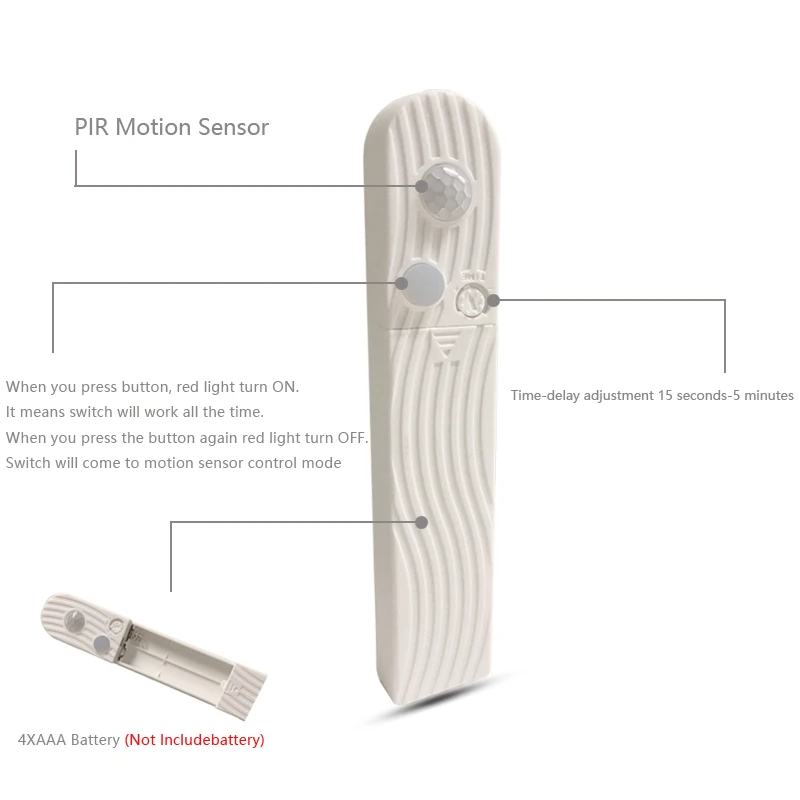Тип: Светодиодная лента с датчиком движения Спецификация (светодиодный светильник с датчиком движения):* Напряжение: 5 В постоянного тока* Расстояние срабатывания: 0 - 5 м* Водонепроницаемость: Да (IP65)* Светодиодный Тип: SMD 2835* Длина: 1 м/2 м/3 м* Светильник Цвет: теплый белый* Цветовая температура: теплый белый (2700K-3500K)* Мощность: движение* Угол луча: 180 градусов* Использование: с 3 м сильной клейкой бумагой на спине, ее можно легко наклеить* Регулируемая яркость: 3* Источник питания: 4 * AAA батареи (аккумуляторы не входят в комплект)* Режимы работы: «ON» и «PIR»Когда вы нажимаете кнопку, красный светильник будет включен, Светодиодная лента всегда будет держать светильник. Когда вы снова нажмете кнопку, красный светильник будет выключен, он будет включен в режим «PIR». Особенности:* Внешний слой ленты-светильник Прозрачный, прозрачный и гладкий. Это желательно не вредит экологии высокая прозрачность, изоляционного пластикового, высокий светильник с высоким коэффициентом пропускания, сильная гибкость и безопаснее. Свойства материала мягкой резины делают ремень лампы гибким и может быть согнут, сложен и ранен, что позволяет легко очертить линейный светильник.* Три режима: Режим постоянного светильник и режим обнаружения PIR (дневной режим, ночной режим)С использованием высокоточного светильник технология управления, в тех случаях, когда дневной режим включен, светильник полосы не влияет на светильник. Будь то во время съемки как днем, так и ночью, светильник полосы чувствует, что человеческого тела будет автоматически светильник или похода по магазинам. При включении ночного режима светильник может гореть только в темноте.• С помощью двустороннего скотча 3M на задней части для гирлянды, может быть напрямую и быстро вставить.* Светодиодный чип высокой цветопередачи, высококачественный светодиодный чип 2835SMD, высокая цветопередача, низкий светильник, долговечный.* Дизайн антимертвых бусин, один светодиодный шарик лампы не яркий, другие бусины лампы, как правило, освещены, не влияет.* Полностью герметичная и водонепроницаемая технология, она может использоваться в различных средах, безопаснее и долговечнее.* Безопасная медная проволока, хорошая электропроводность, быстрая теплоотдача, стабильная и безопасная.* Интимные линии пошива, чтобы соответствовать длине, которую вы хотите, вы можете организовать свои идеи по вашему желанию.Применение:* Домашний декор: светильник можно спрятать в зеркалах, потолках, стенах, полу, занавесках, книжных полках, полках или шкафах в темном корыте, обрисовать пространство, обогатить многослойное пространство, дайте пространство для красоты температуры в темноте, чтобы вы чувствовали себя тепло и комфортно.* Коммерческое использование: его можно использовать в барных прилавках, шкафах для магазинов, сценах KTV, устанавливая текстуру товаров и создавая атмосферу. Контраст между светильник и темная сторона пространство и целостной среды светильник окружающей среды усиливается, и пространственно-фактура является более многослойное.
