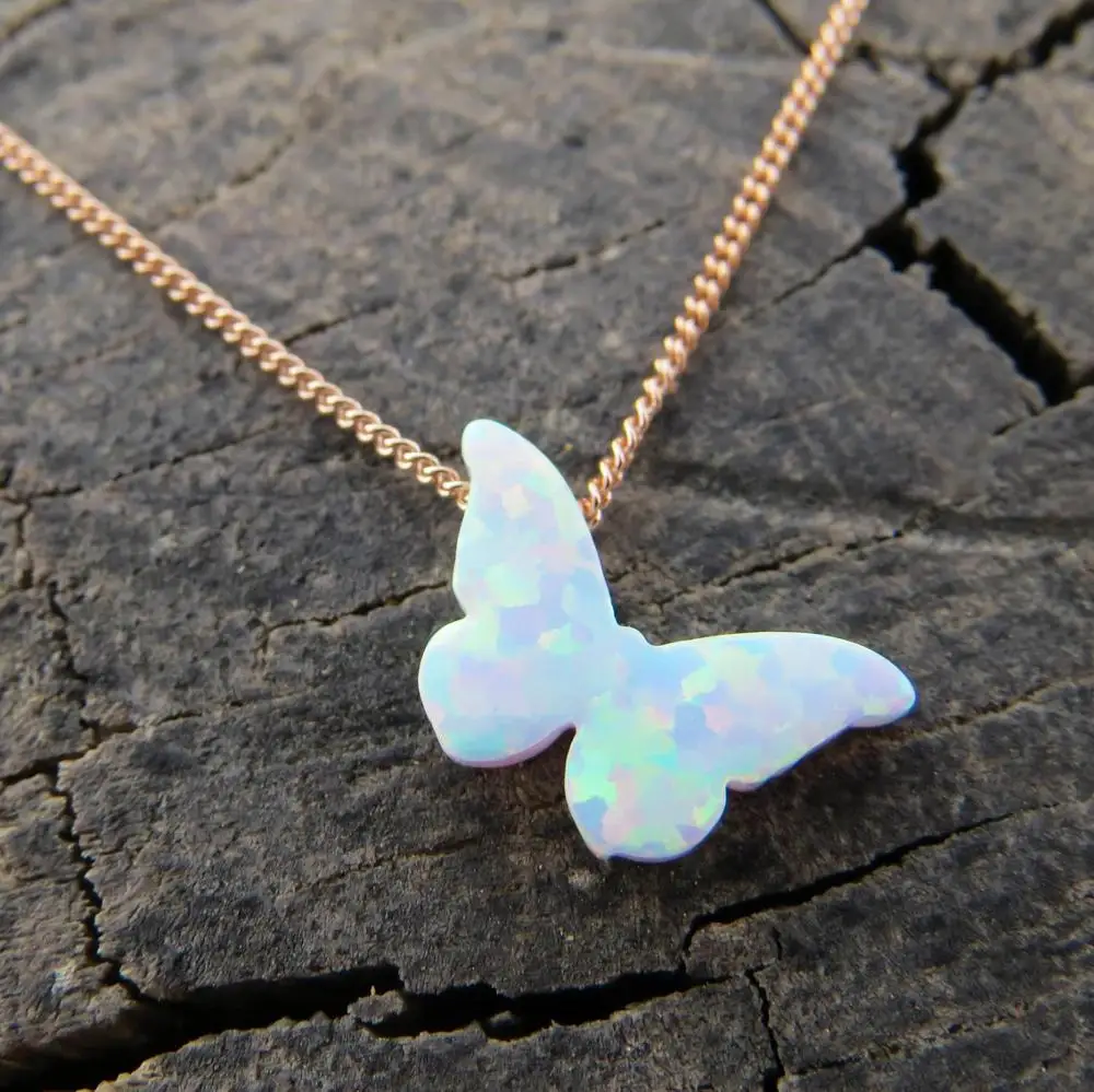 Женское Ожерелье из нержавеющей стали с подвеской-облаком из опала, золотая цепочка с белой бабочкой, подарочное Ювелирное Украшение для невесты