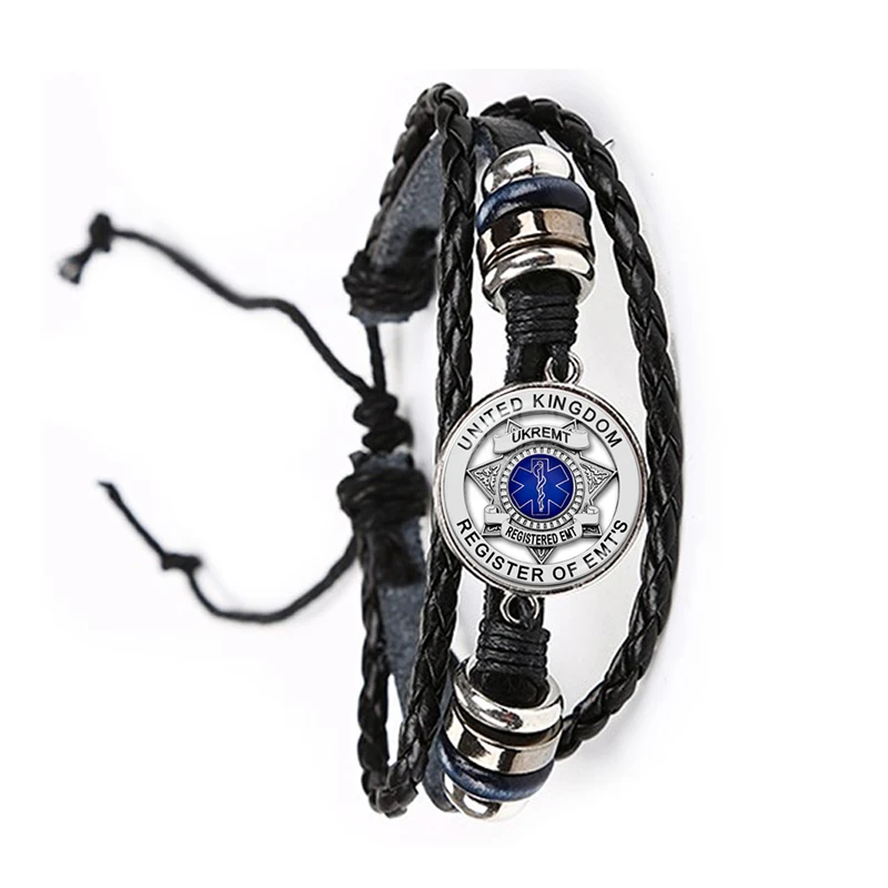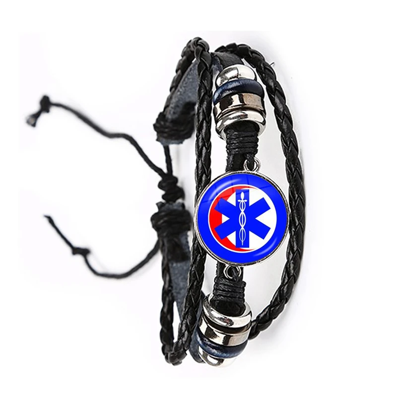 Аварийный медицинский техник парамедик символ логотип черныйкоричневый кожаный браслет со стеклянным куполом синяя звезда жизни знак EMT браслет