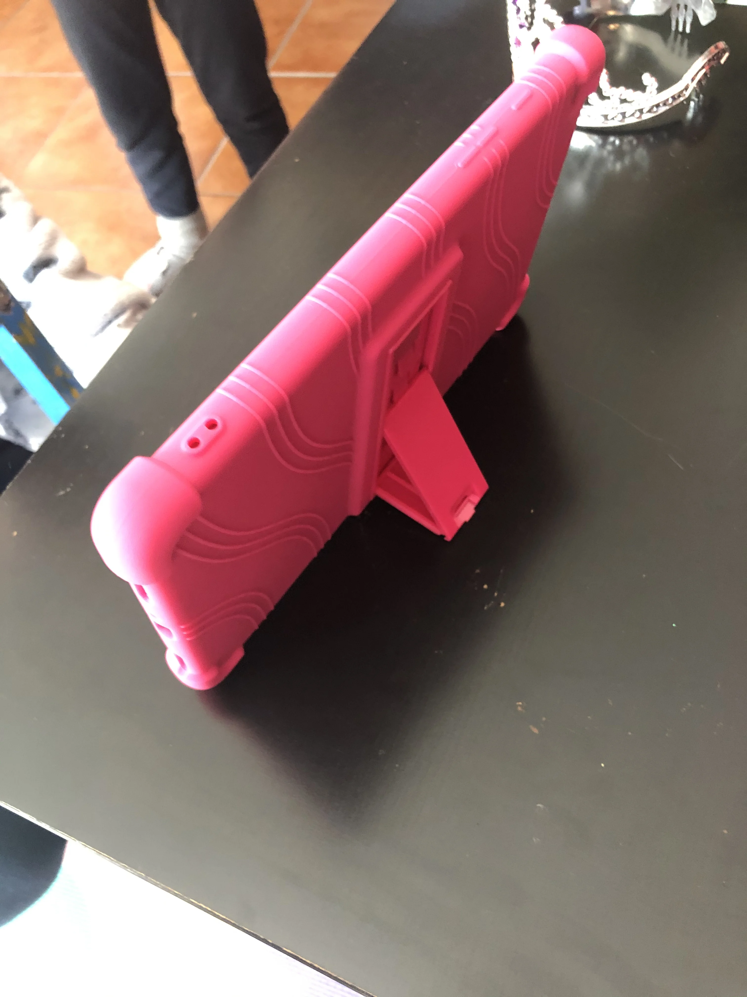 Отличный чехол, толстая резина, сзади подставка. Пришел за 1.5 недели, очень быстро.