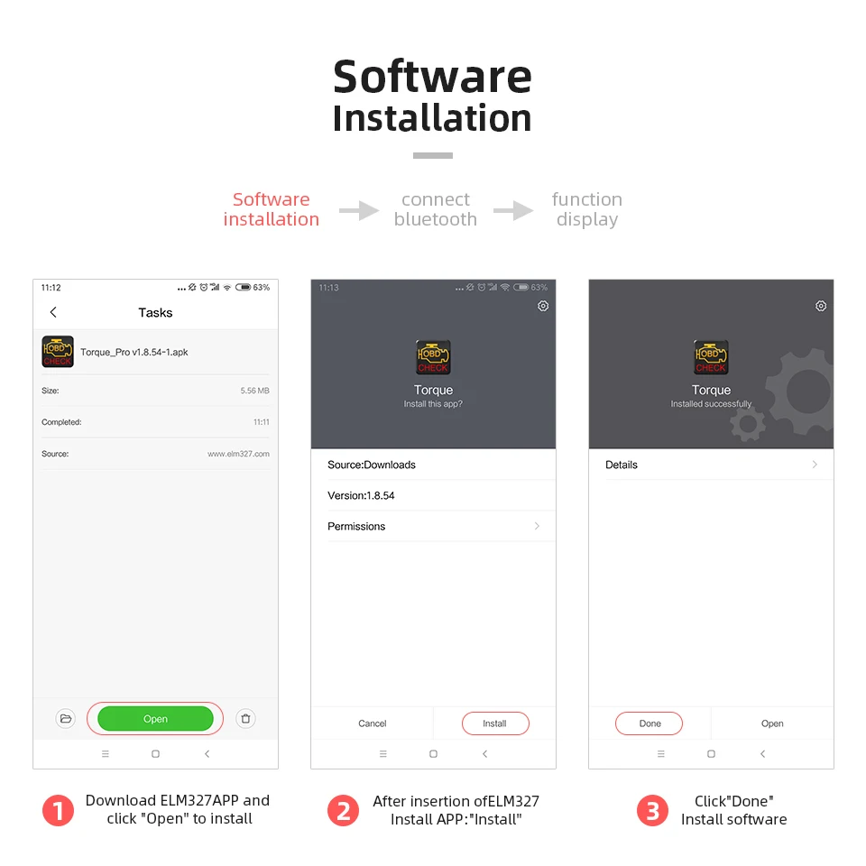 О: на телефоне android:1. Откройте «Настройки» вашего android и найдите BT из ELM327:OBDll, затем введите пароль 1234.2. Откройте крутящий момент -- etting --- адаптер OBD2 Settins --- Тип подключения --- BT --- back --- ChooseBT устройство --- OBDII[AA:BB:CC:11:22:33].