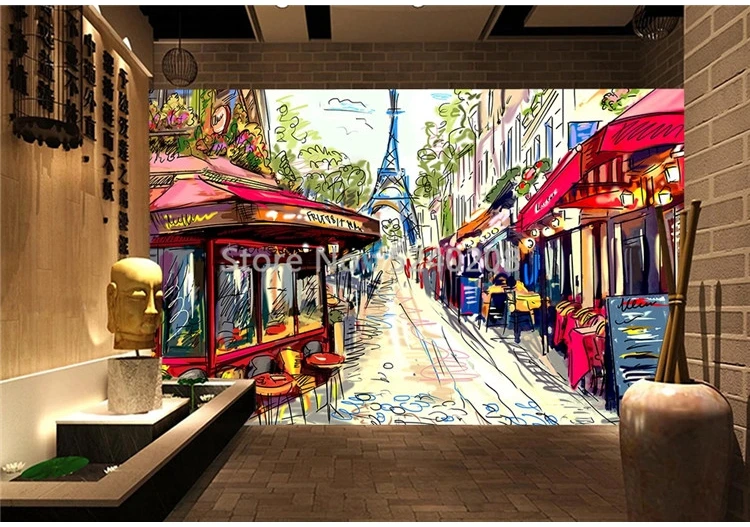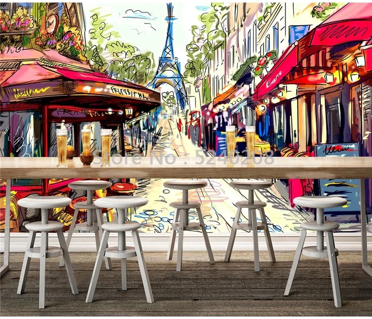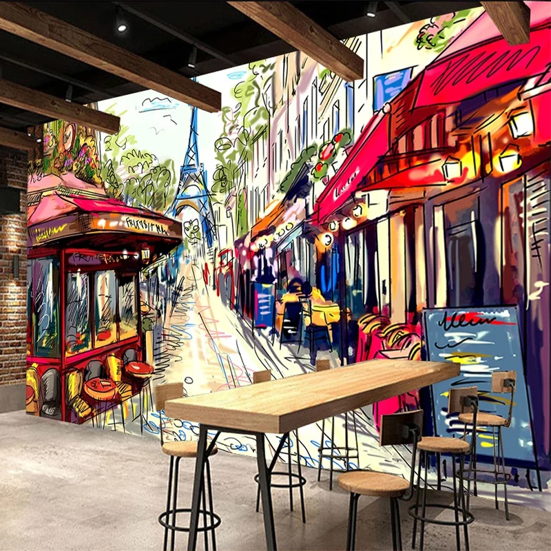 Самоклеящиеся 3D обои с уличным видом, граффити, фотообои для ресторана, кафе, фон, Настенный декор, водонепроницаемый, Papel De Parede Sala 3 D