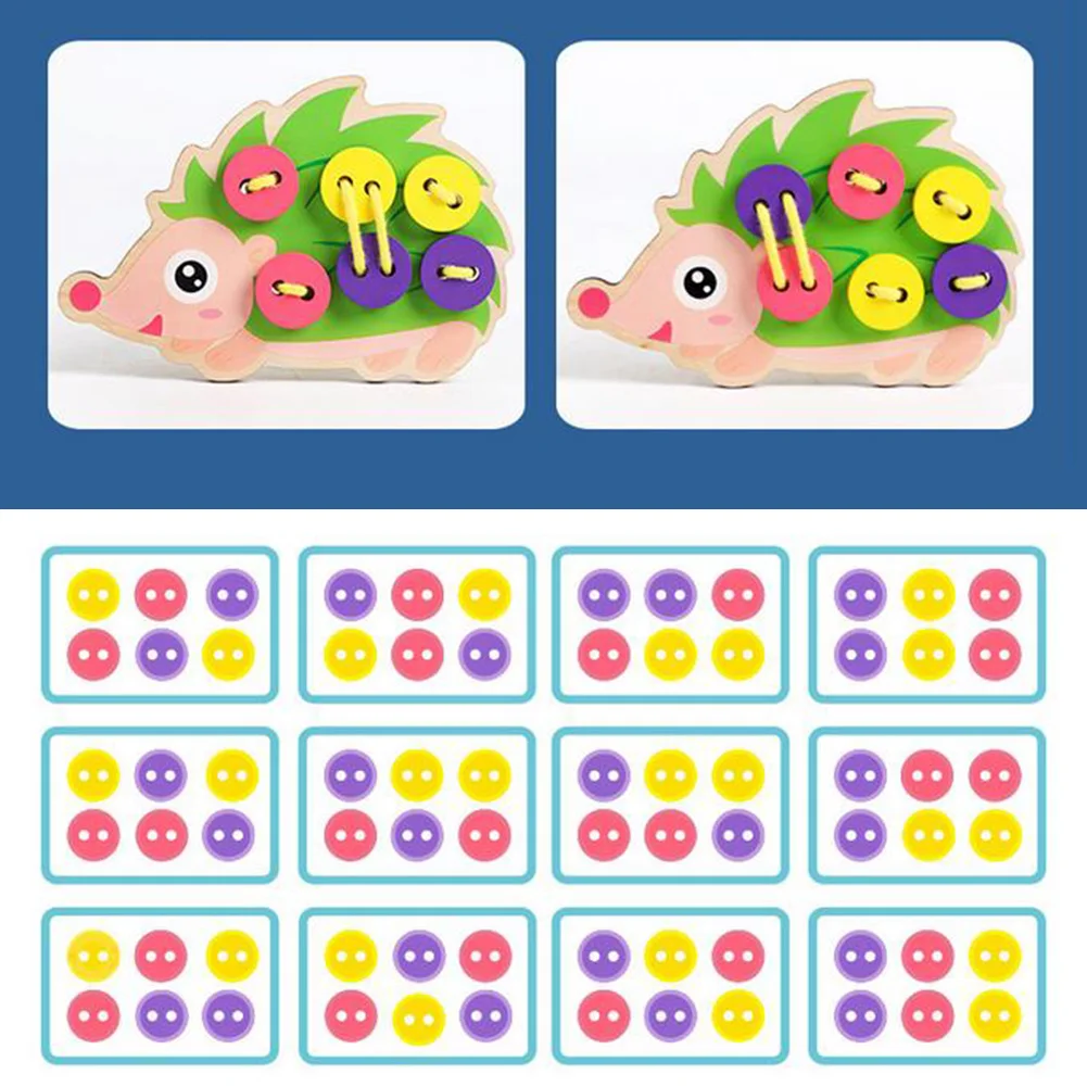 Детское мультяшное платье с ежиком, ручная нить, швейная кнопка, настольные игры, игрушки, координация рук и глаз, Обучающие игрушки Монтессори