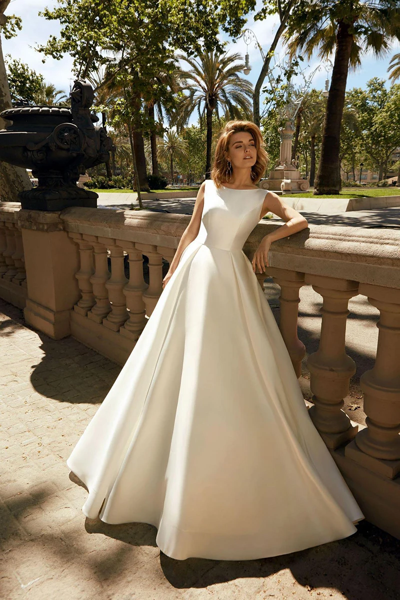 Платье свадебное атласное ТРАПЕЦИЕВИДНОЕ на 2022 пуговицах с карманами