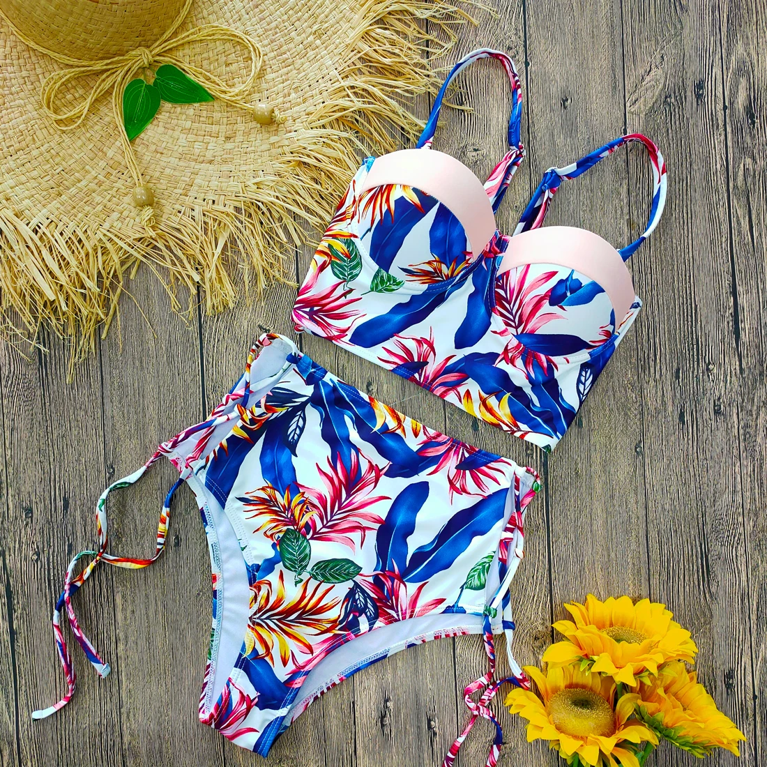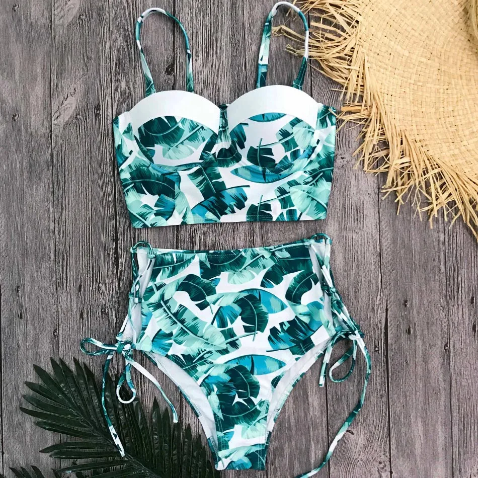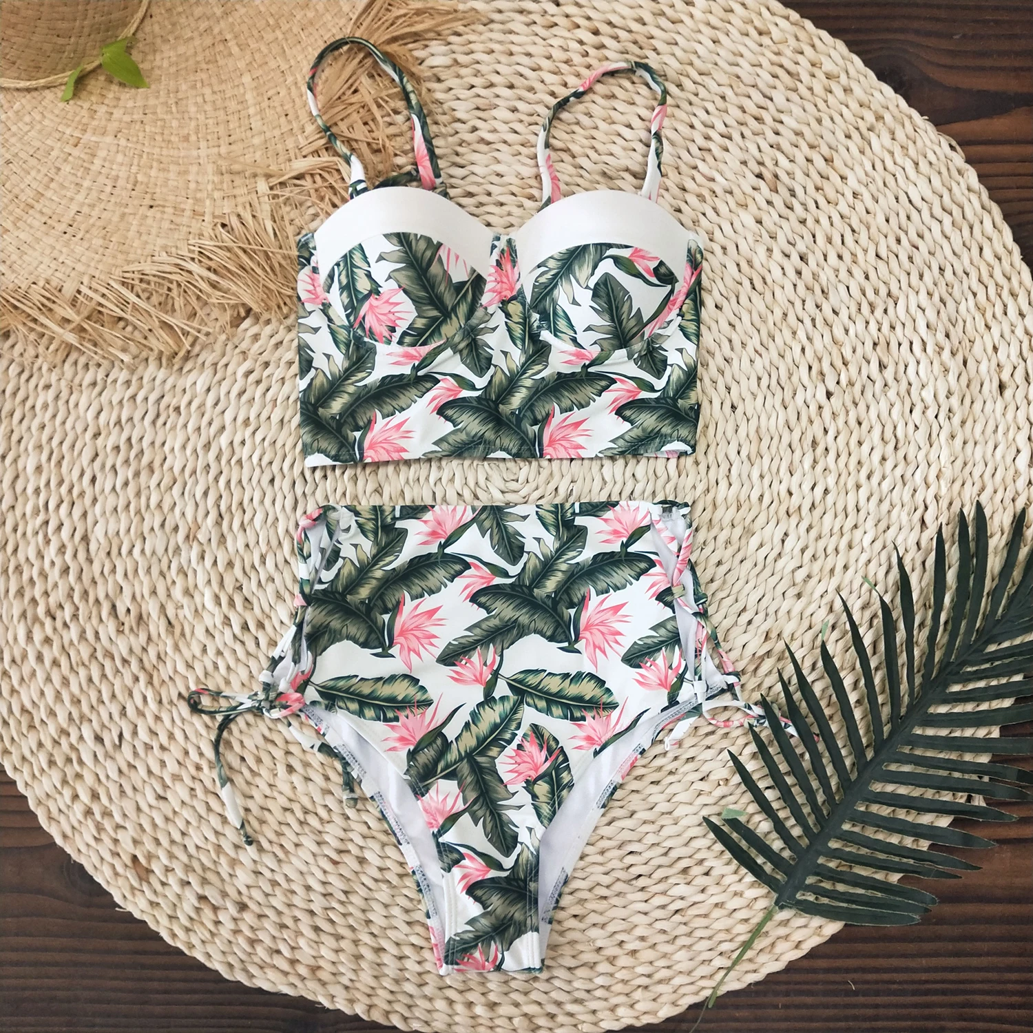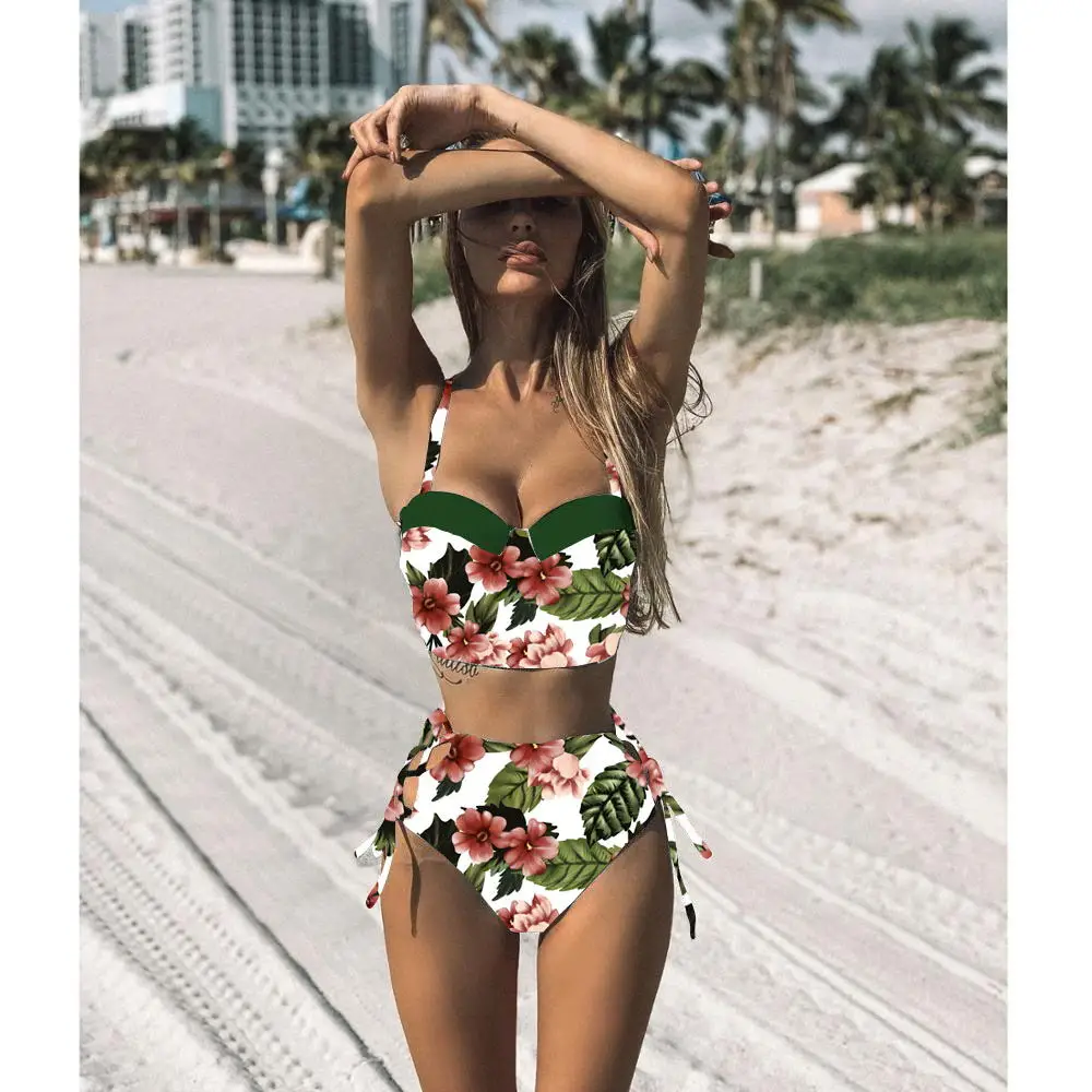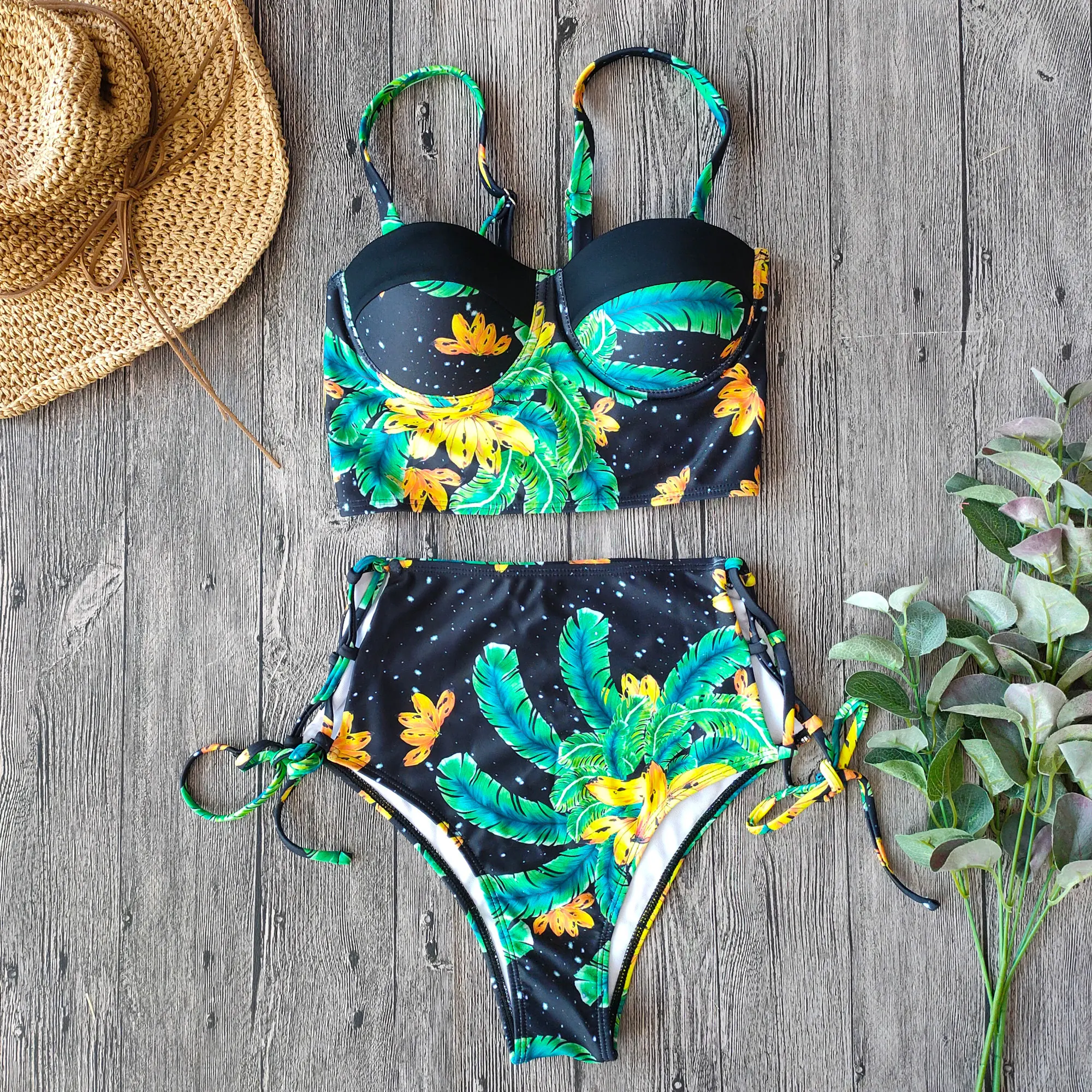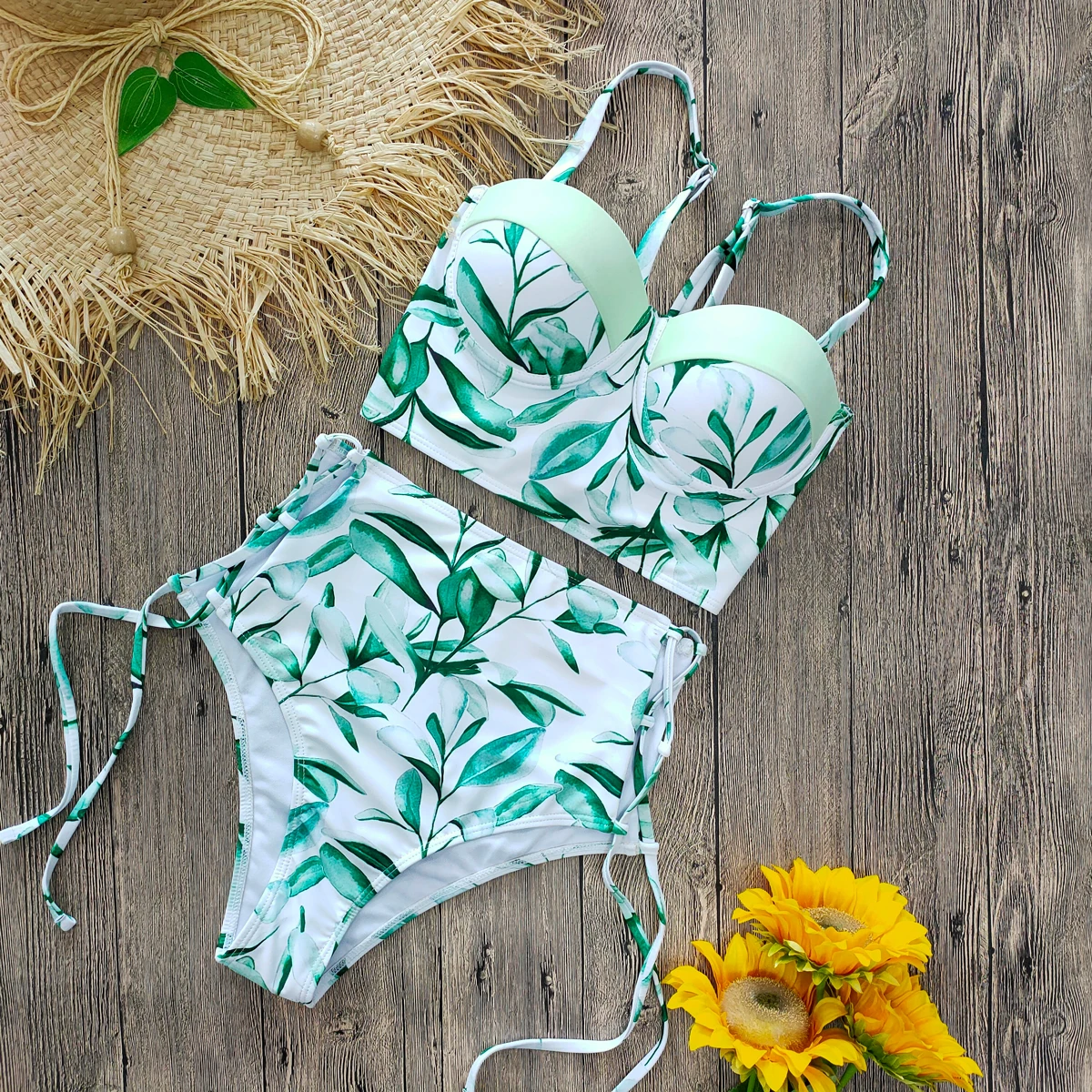 2021 новый купальник с высокой талией, женский купальник, бикини с принтом, бандажный комплект бикини, Мягкий купальный костюм, бикини